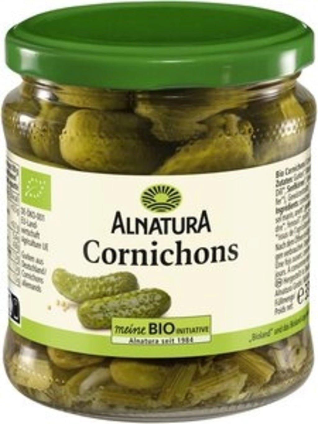 Cornichons ovat rapeita pikkukurkkuja, jotka sopivat täydellisesti alkupala-laudalle tai salaattiin. Nämä Alnaturan luomukurkut viljellään Saksassa, ja ne on makea-happamia ja hienostuneesti maustettu yrteillä ja mausteilla.