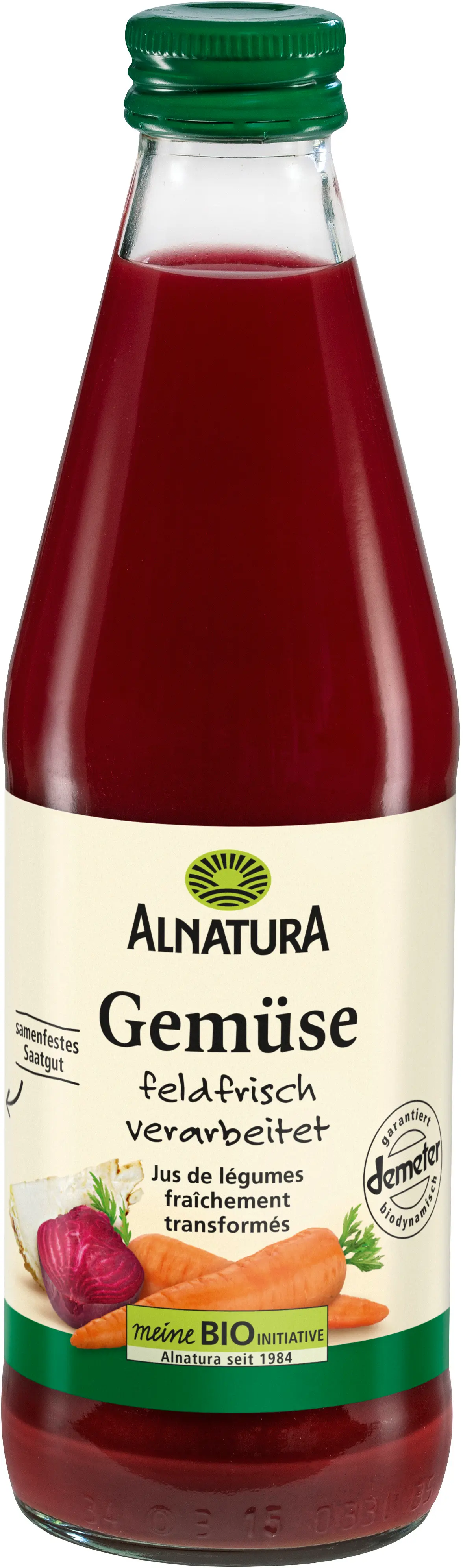 Nauti Alnaturan luomukasvismehua juomana tai käytä sitä keittojen ja kastikkeiden pohjana. Tuoreen, suoraan pellolta tuotujen porkkanoiden, sellerin ja punajuurien mehut sekoitetaan acerolaan ja sitruunamehuun harmonisen, aromaattisen maun luomiseksi.