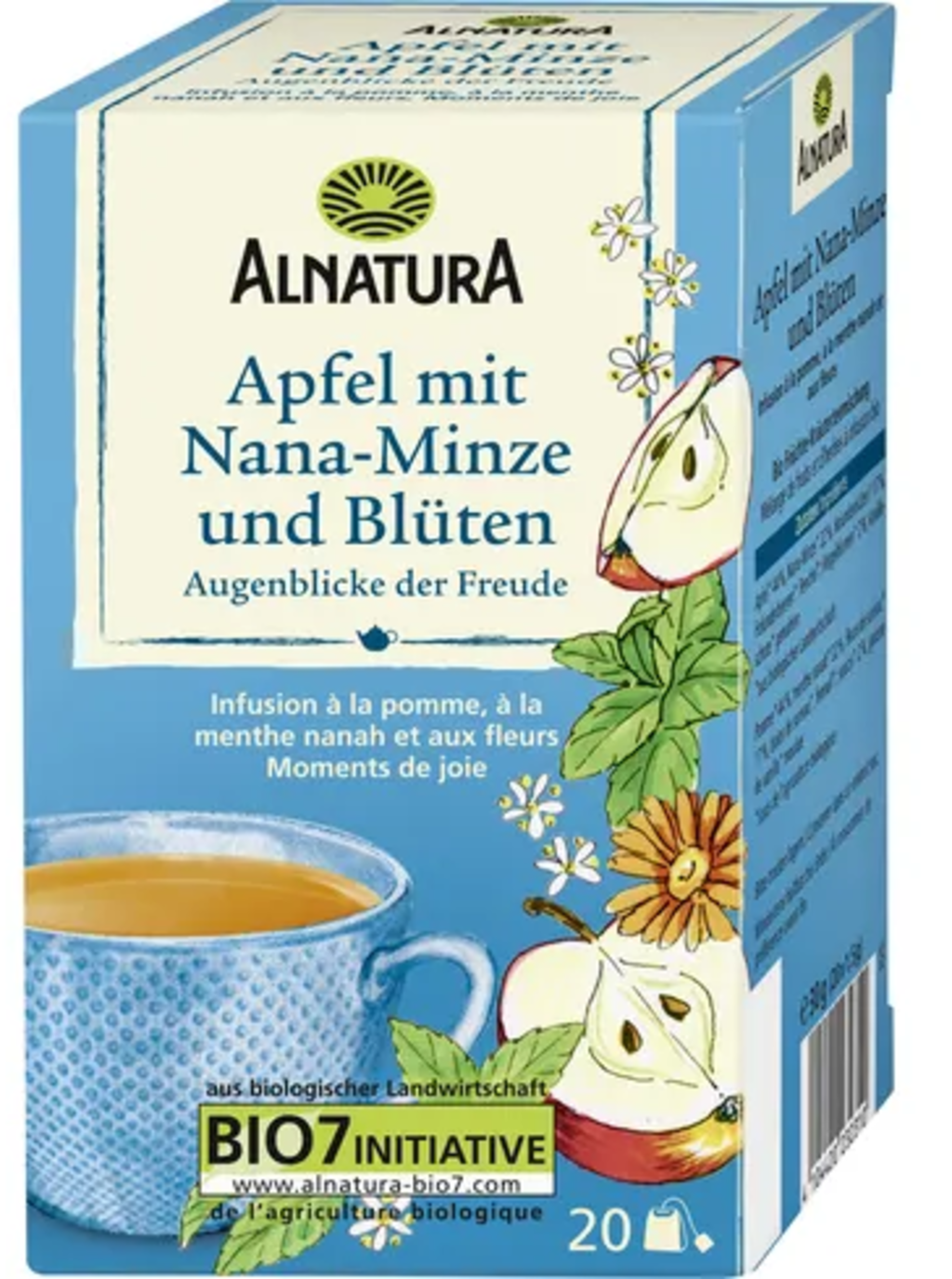Alnatura Luomu yrtti-hedelmätee omena Nana-mintulla & kukilla, 30 g