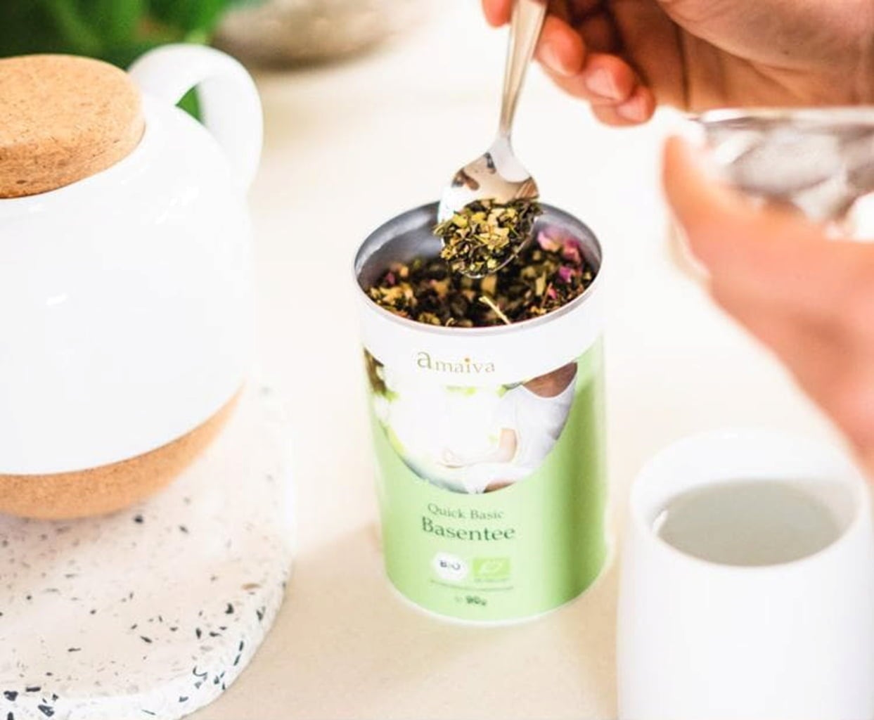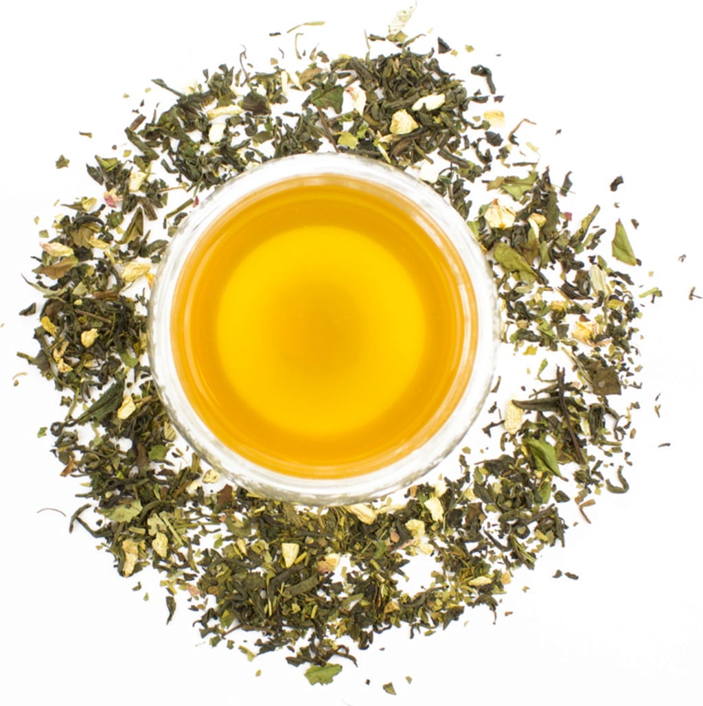 Luomu-teesekoitus vihreästä teestä, valkoisesta teestä ja yrteistä
