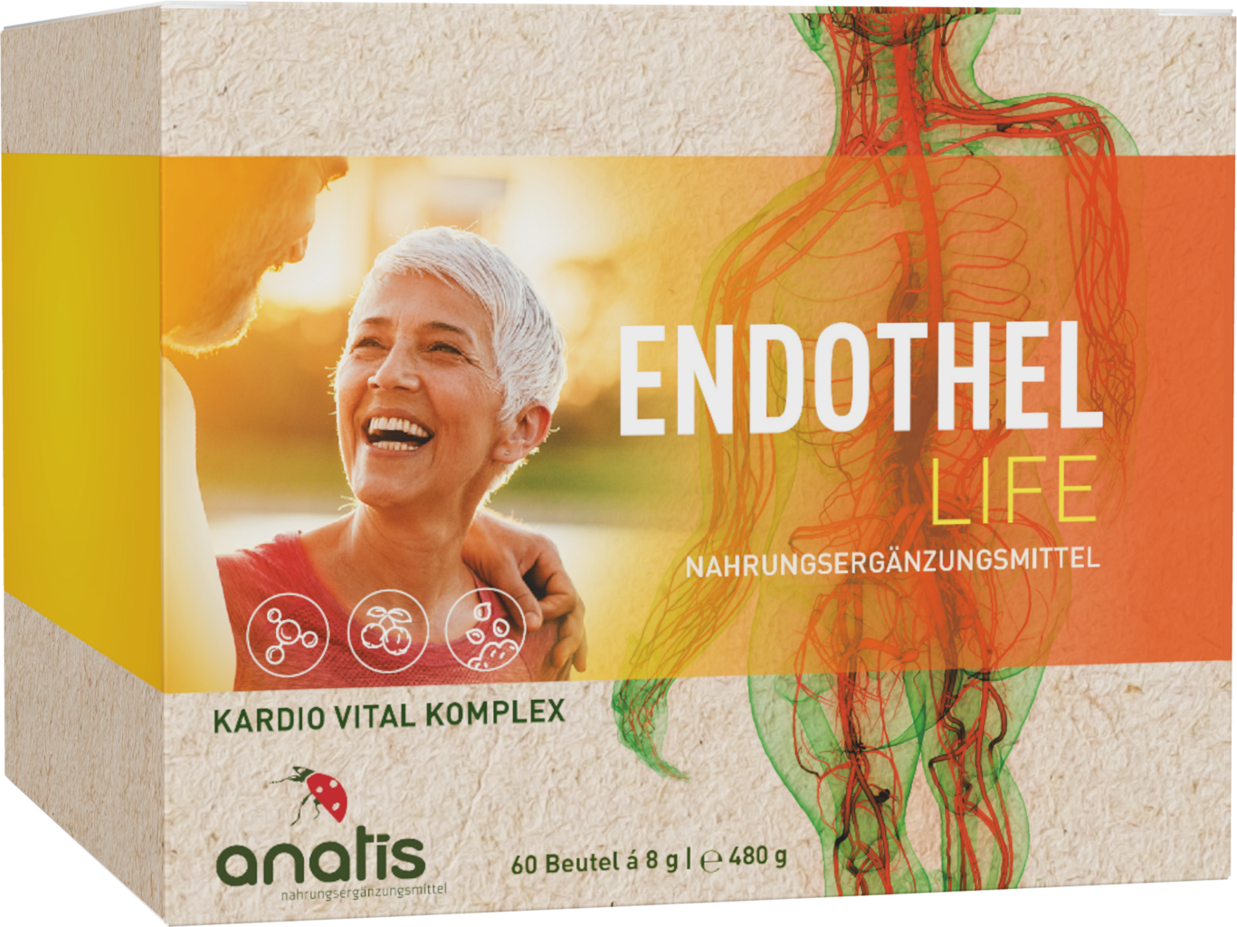 Endothel Life on anatiksen kehittämä, tarkasti tasapainotettu ravintoainekompleksi juomajauheen muodossa, joka on helppo valmistaa ja sisällyttää päivittäiseen ruokavalioon. L-situlliini, luonnollinen acerola-kirsikan C-vitamiini, magnesiumsitraatti, afrikkalainen baobab-hedelmä ja B-vitamiinikompleksi (Panmol® B-Complex) muodostavat tämän jokapäiväisen erityiskoostumuksen. Hedelmällinen persikkajauhe lupaa miellyttävän maun jokaisella siemauksella.