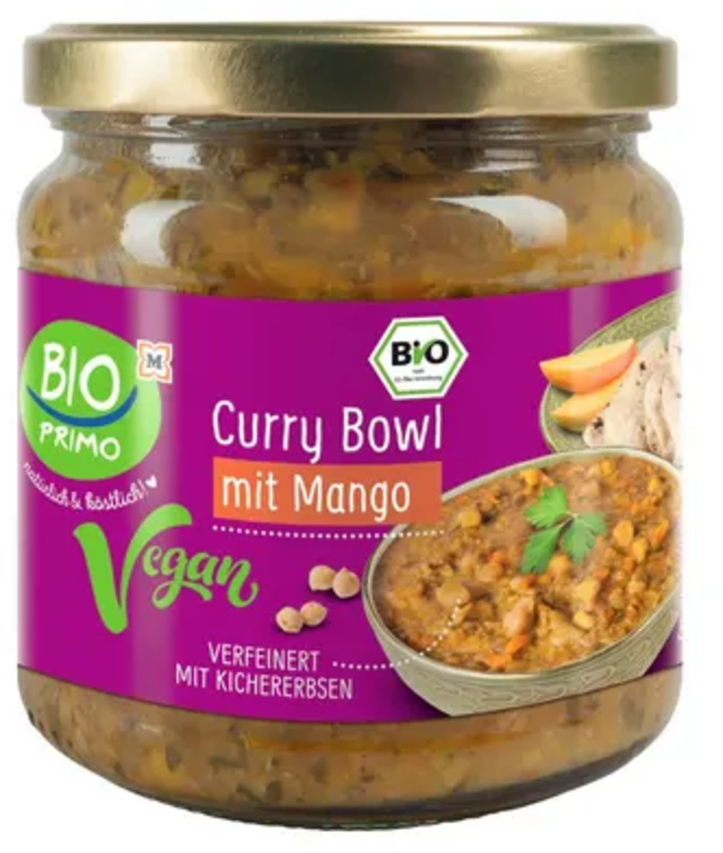 BIO PRIMO Luomu Vegaaninen Curry-kulho Mangolla, 350 g