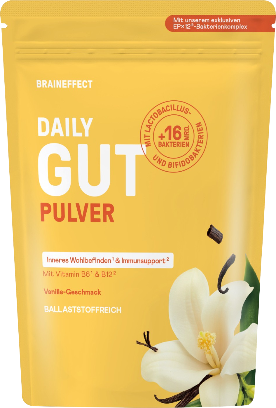 DAILY GUT määrittelee uudelleen modernin reseptin standardit. Se yhdistää 16 miljardia elävää bakteeria 12 eri kannasta, kuten Bifidobacterium ja Lactobacillus, vastustuskykyiseen maissidextriniin ja akaasiakuituun. Jokainen annos tarjoaa yli 1/5 päivittäisestä suositellusta kuitumäärästä.