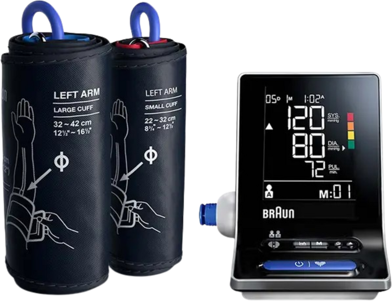 Braunin ExactFit™ 3:lla mittaat verenpaineesi kätevästi kotona – laita se vain paikalleen, paina nappia ja valmista tuli. Laite on kliinisesti testattu ja antaa sinulle luotettavat tulokset. Erittäin suuri, taustavalaistu näyttö näyttää verenpaine- ja pulssiarvosi väritunnisteina – jotta tiedät heti, onko kaikki kunnossa. Parhaan mukavuuden takaamiseksi mukana on kaksi mansettia (normaaliin ja isoon olkavarteen). Lisäksi saat hyödyllisiä ominaisuuksia, kuten keskiarvotoiminnon, tallennustilan kahdelle käyttäjälle ja jopa epäsäännöllisen sykkeen tunnistuksen. Soft-Inflation-teknologia tekee mittauksesta erityisen miellyttävän.