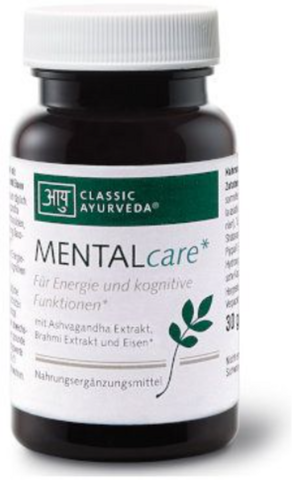 Classic Ayurvedan MENTALcare-kapselit yhdistävät valikoiman intialaisia kasviuutteita hivenaineeseen rauta. Resepti perustuu Ashwagandhaan, Brahmiin ja Mandukaparniin, joita täydentävät Tulsi ja Shatavari. Koostumuksen viimeistelee Pippali-jauhe.