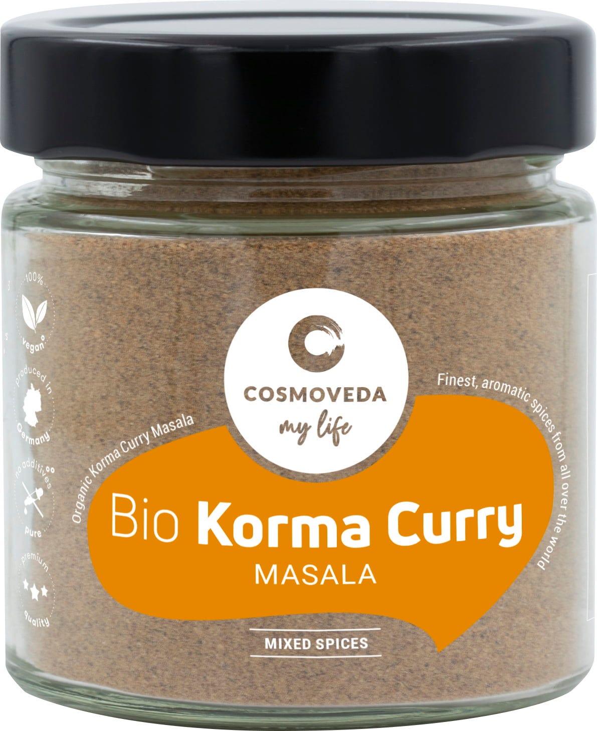 COSMOVEDAn luomulaatuinen Korma Curry Masala on tasapainoinen ayurveda-sekoitus hienoja mausteita, jonka avulla loihdit herkullisia Korma-ruokia.