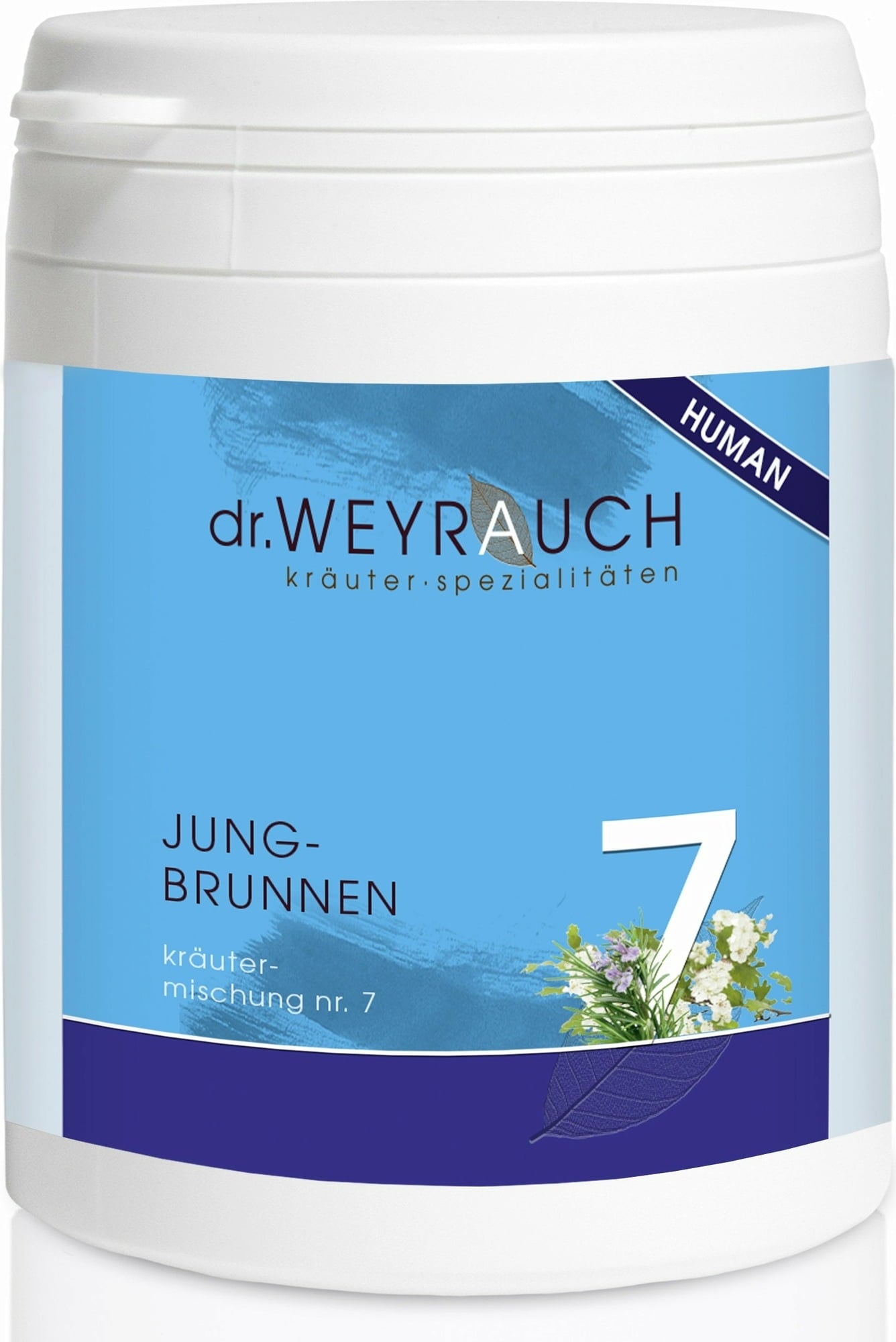 Dr. Weyrauchin Nr. 7 Elämänlähde perustuu magnesiumsitraattiin. Magnesium tässä tuotteessa saadaan orapihlajasta, galangalista, rosmariinista, gingosta ja sitruunamelissasta. Elämänlähde on yhdistetty vihreä tee -uutteeseen, rypälesiemeniin ja pellavansiemeniin. Resepteissä on mukana proantosyanidiinia (OPC), katesiineja (antosyanidiinia), kversetiiniä ja luonnollista E-vitamiinia.