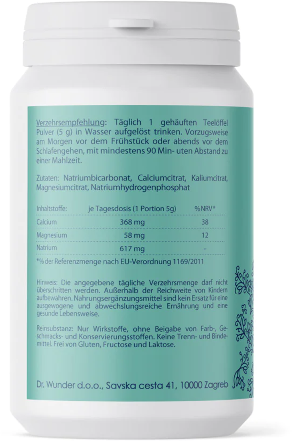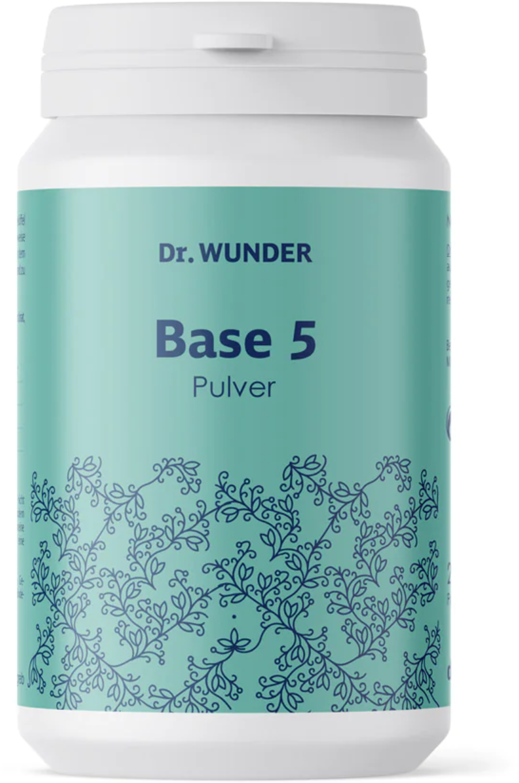 Dr. Wunderin Base 5 on basistiiviste, joka koostuu viidestä emäksisestä mineraaliyhdisteestä, ja se sopii ihanteellisesti liuotettavaksi veteen. Jauhe on vegaaninen eikä sisällä väri-, maku- tai säilöntäaineita tai muita lisäaineita.