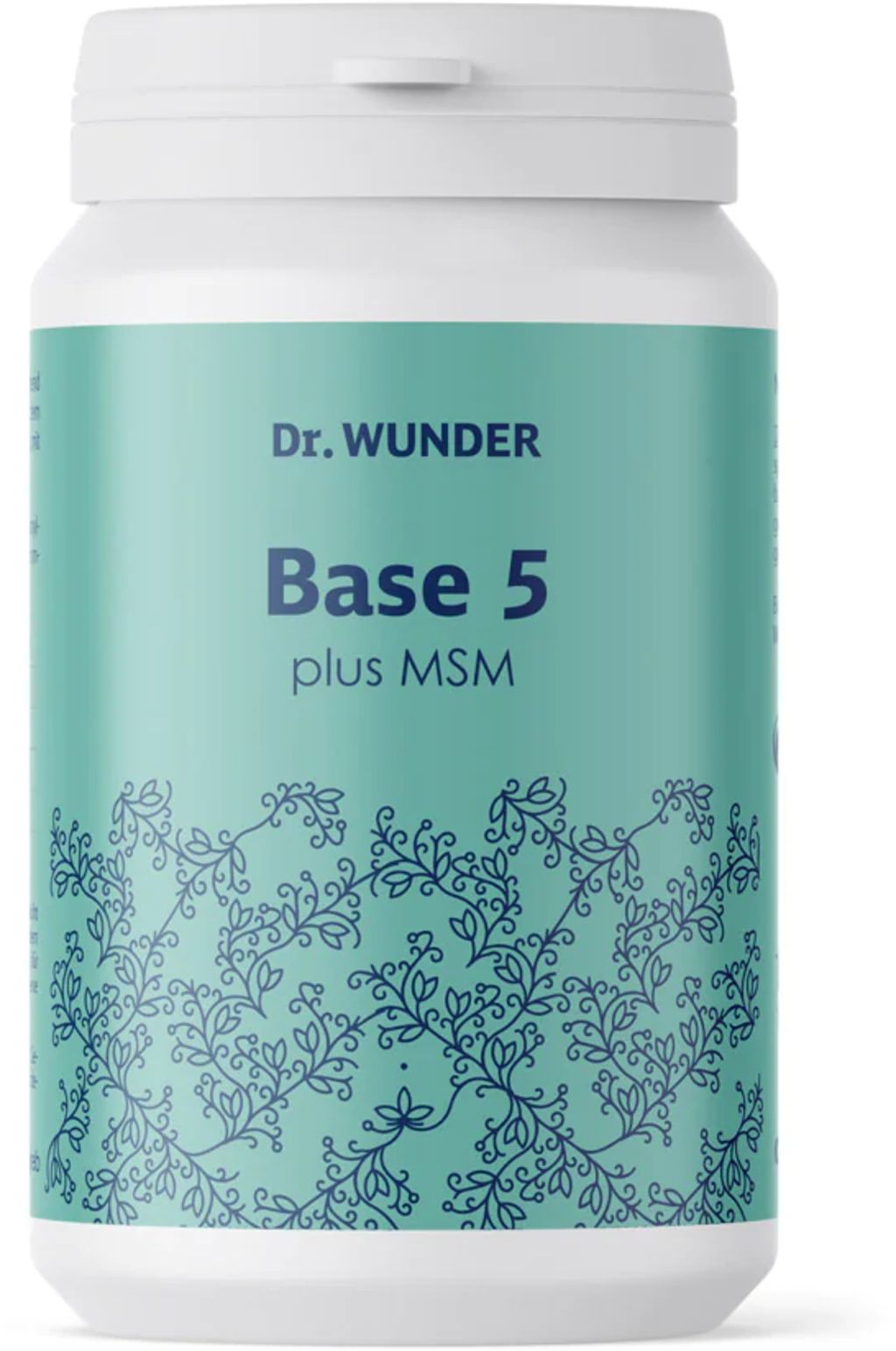 Base 5 plus MSM Dr. Wunderilta ovat vegaanisia kapseleita, jotka koostuvat 5 emäksistä muodostavasta kivennäisaineyhdistelmästä ja MSM:stä (orgaaninen rikki). Kapselit soveltuvat sekä lyhyt- että pitkäaikaiseen käyttöön.