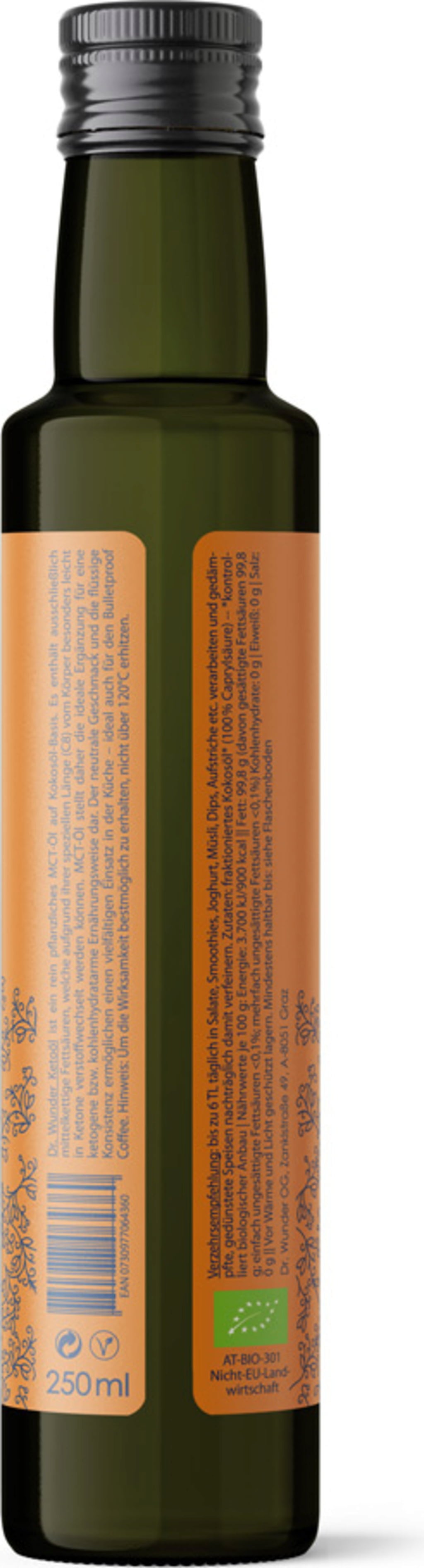 Puhtaasti kasvipohjainen ja kookosöljypohjainen MCT-öljy tuo ruokavalioosi vain keskipitkäketjuisia rasvahappoja. Neutraali maku mahdollistaa monipuolisen käytön keittiössä. Ihanteellinen ketogeeniselle ja vähähiilihydraattiselle ruokavaliolle.
