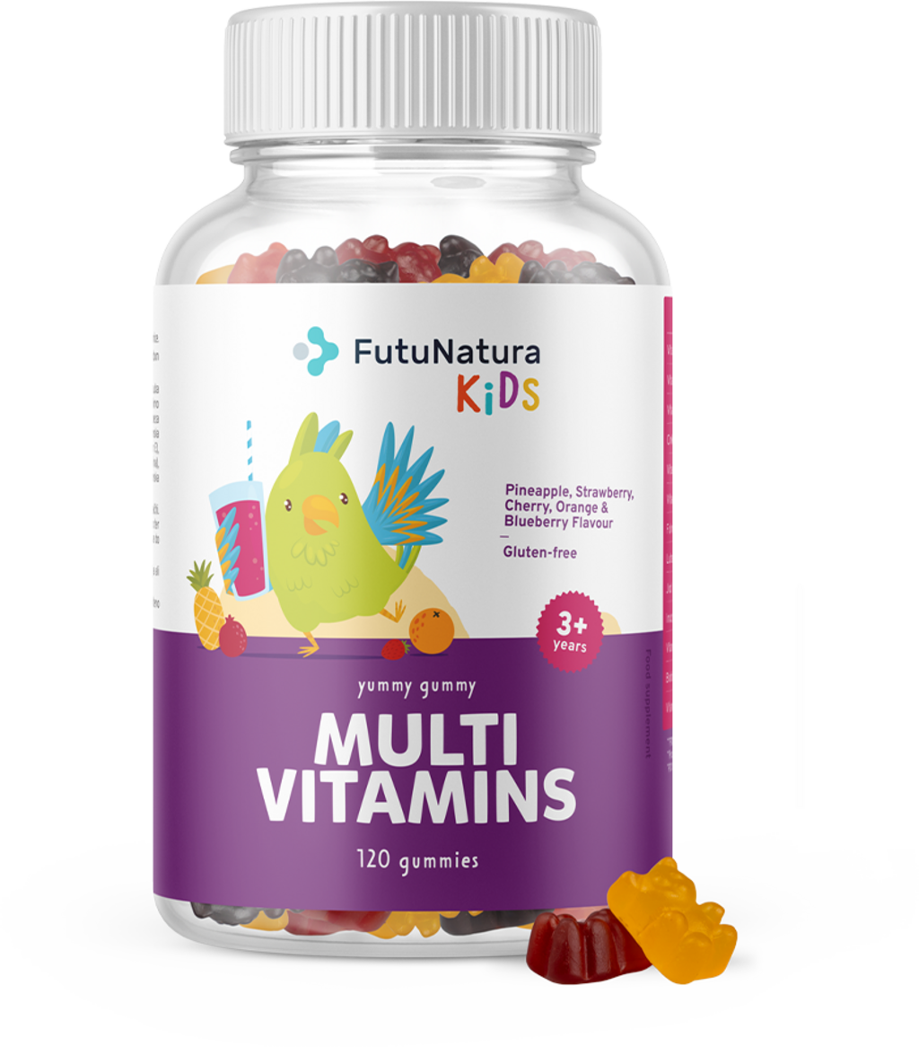 MULTI VITAMINS ovat FutuNatura-merkin multivitamiinikumit, jotka on erityisesti kehitetty lapsille sisältäen huolellisesti valitun sekoituksen 11 vitamiinista ja kivennäisaineesta. Tämä ravintolisä on suunniteltu täydentämään lapsesi kattavaa ravinnonsaantia.