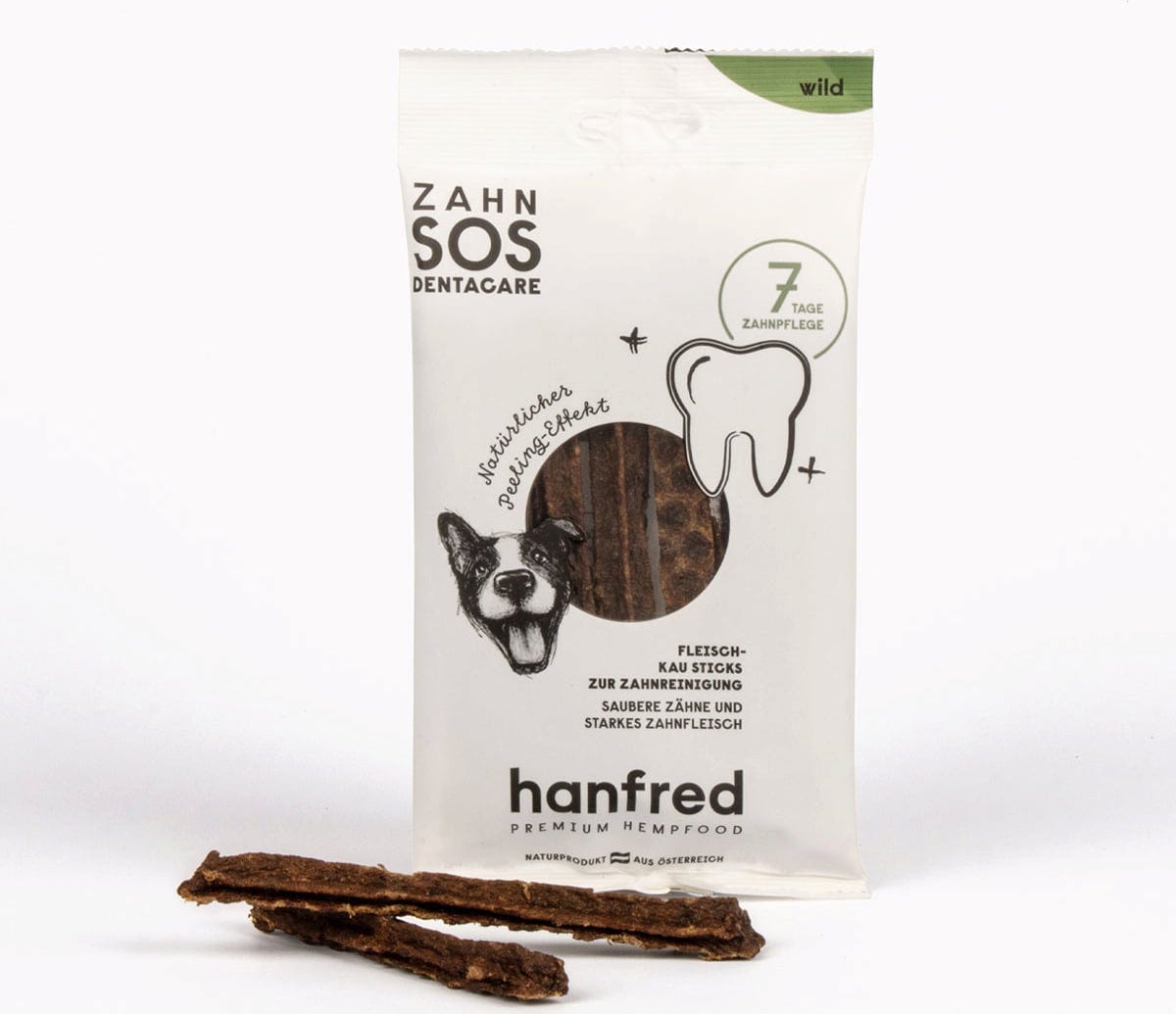 Hoidata koirasi hampaita maukkaalla tikkarilla päivittäin. Dentacare-tikkarit koostuvat korkealaatuisesta villilihasta (85 %) ja hienoksi jauhetuista hampunsiemenistä (15 %). Karkea pinta voi auttaa poistamaan peitettä pureskelun aikana – täysin ilman keinotekoisia lisäaineita.