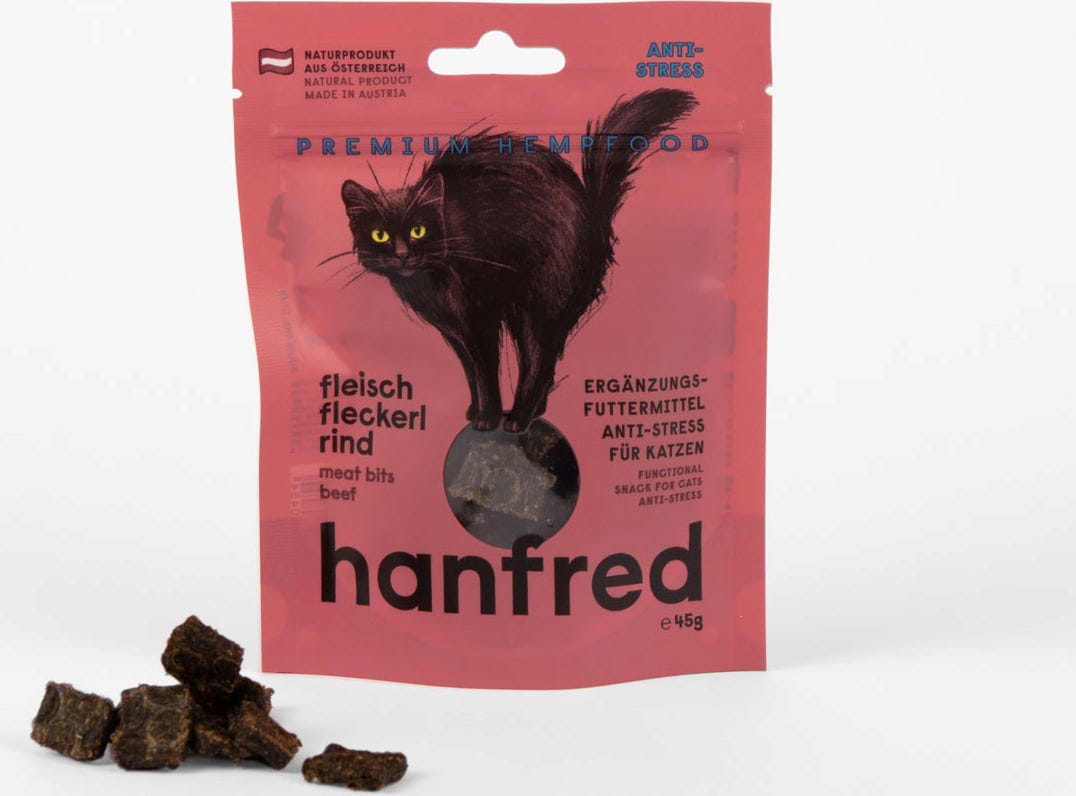 Jos kissasi on herkkä muutoksille tai stressaaville tilanteille, tämä herkku voi olla hyvä valinta. Hanfredin lihaherkut sisältävät 95 % lihaa ja 5 % hampunsiementen jauhetta – ilman viljaa ja keinotekoisia lisäaineita.