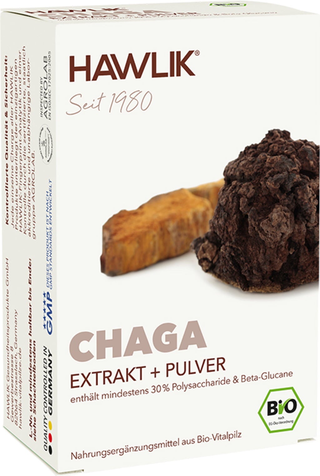 Hawlik Luomu Chaga -uute + jauhe, 60 kapselia