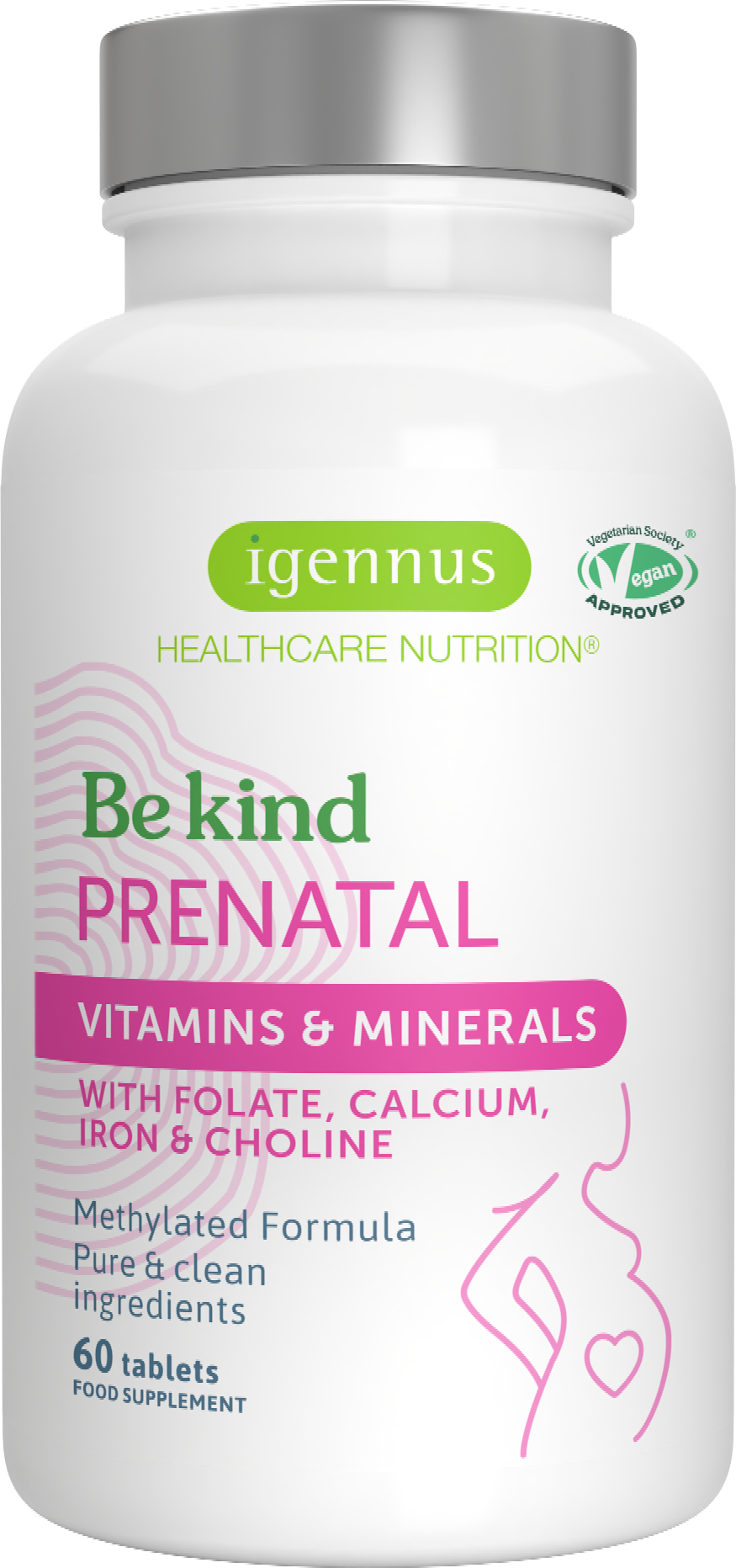 Igennus Be Kind Prenatal - Vitamiineja ja Mineraaleja, 60 tablettia