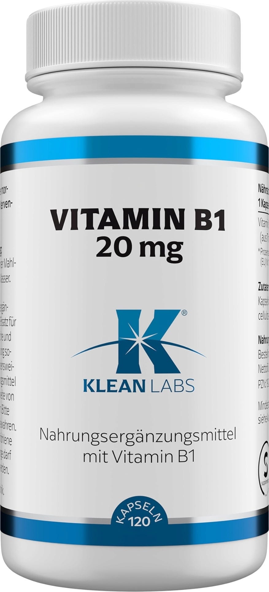 KLEAN LABS B1-vitamiini 20 mg, 120 kapselia