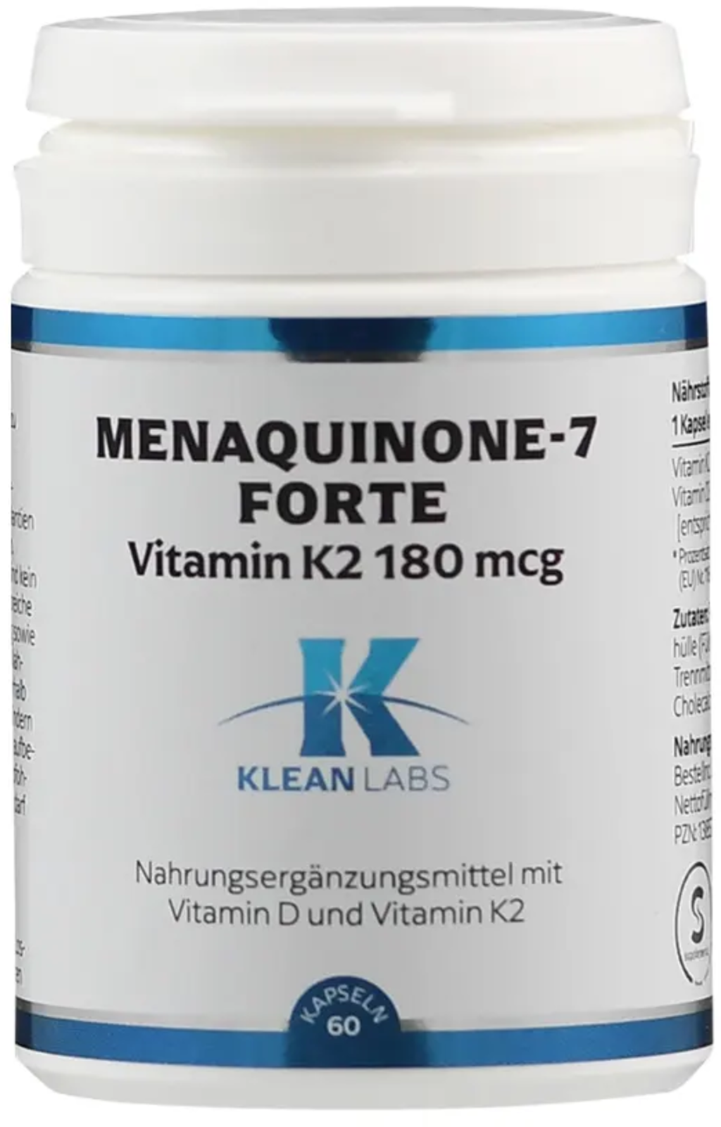 KLEAN LABS D3- ja K2-vitamiini forte Menaquinon, 60 kapselia
