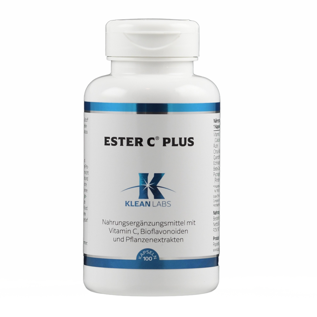 Ester-C® Plus KLEAN LABS:lta sisältää happovapaata C-vitamiinia, joka on valmistettu patentoidulla menetelmällä ja jolla on viivästetty vapautus pitkäaikaista vaikutusta varten jopa 24 tunniksi. Kapselit sisältävät lisäksi kversetiiniä, punahattu-juuriuutetta, beetakaroteenia ja merimännynkuoriuutetta.