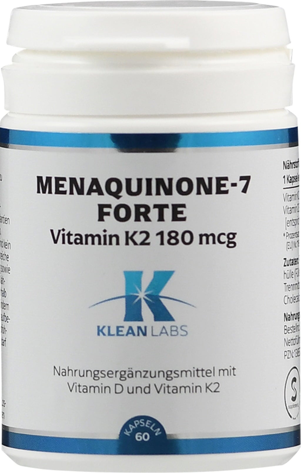 KLEAN LABS Menaquinon-7 Forte K-vitamiini K2 180 mcg, 60 kapselia