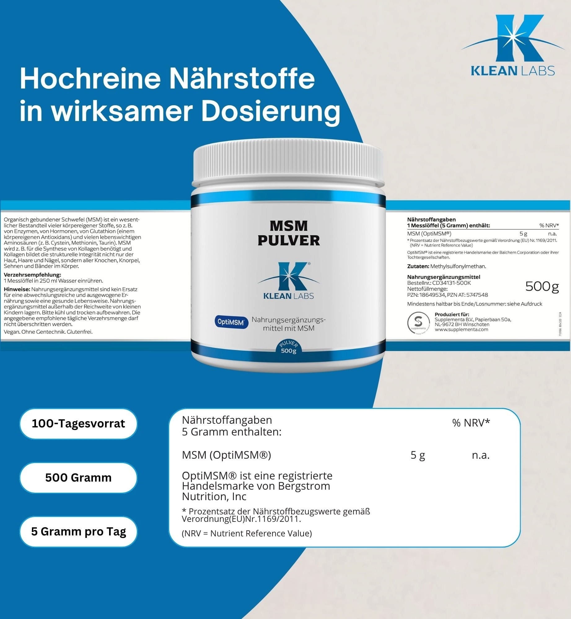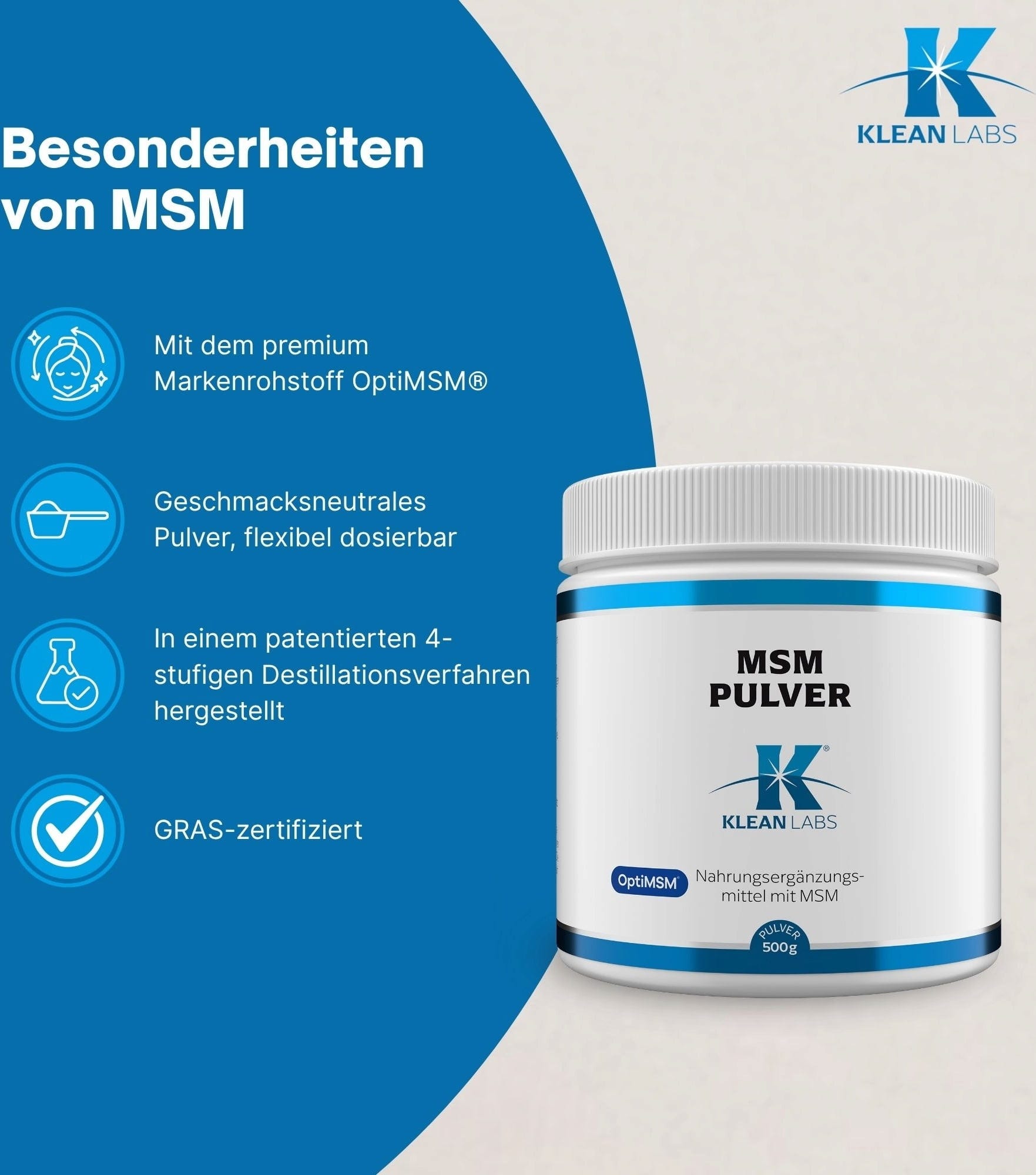 KLEAN LABS MSM-jauhe, 500 g