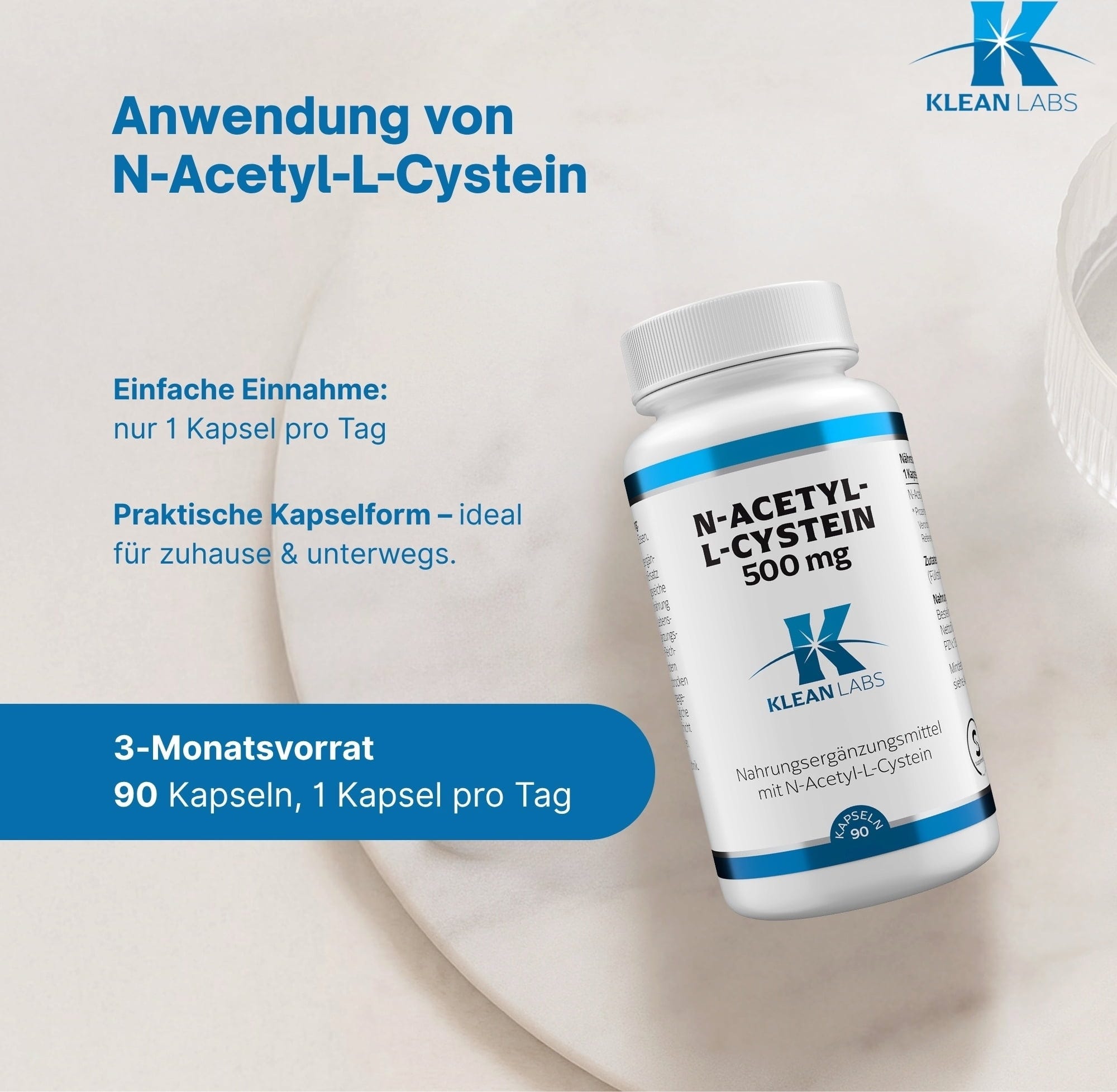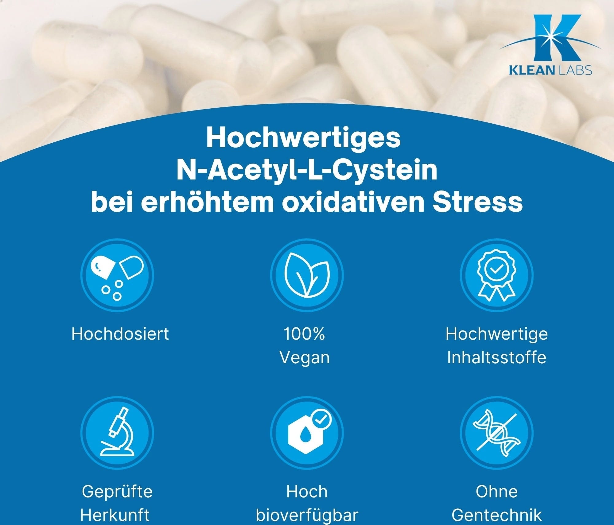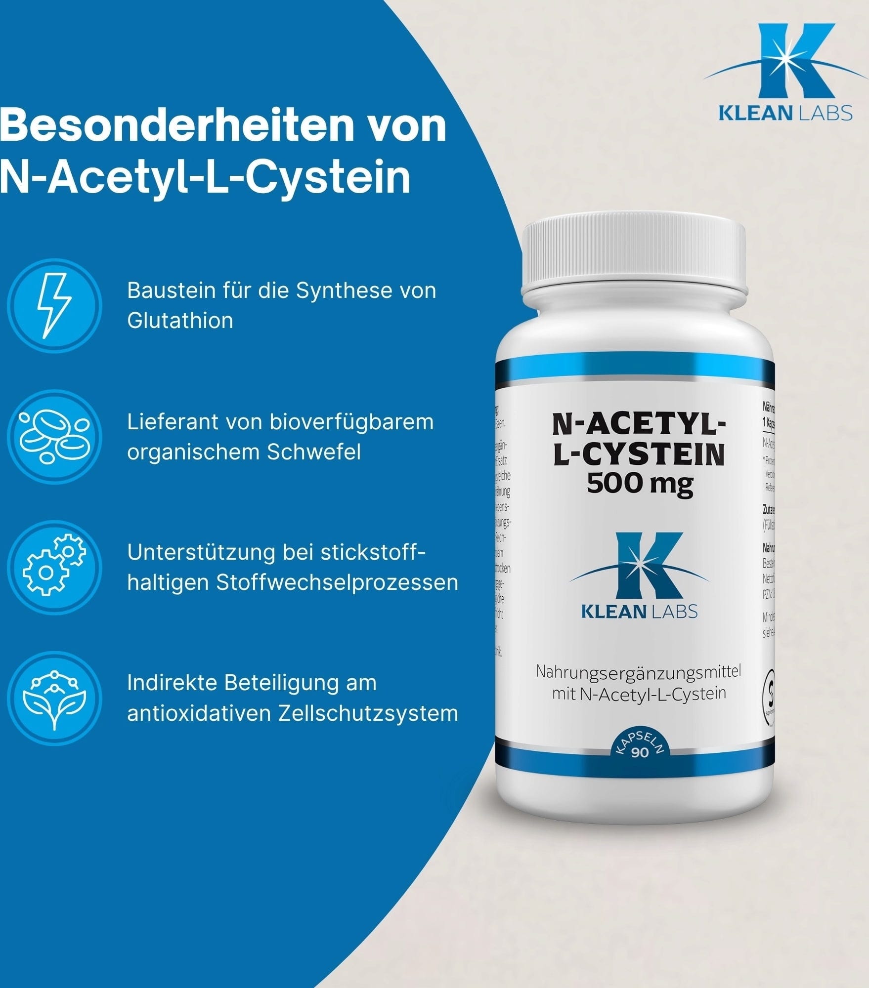 Klean Labsin kapselit sisältävät 500 mg puhdasta N-asetyyli-L-kysteiiniä (NAC) kapselia kohden. Lisäksi tuote on 100% vegaaninen ja gluteeniton.