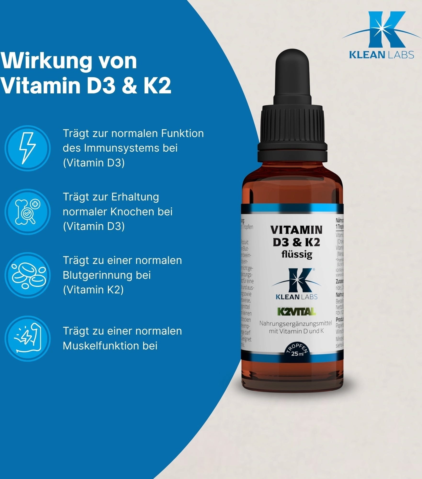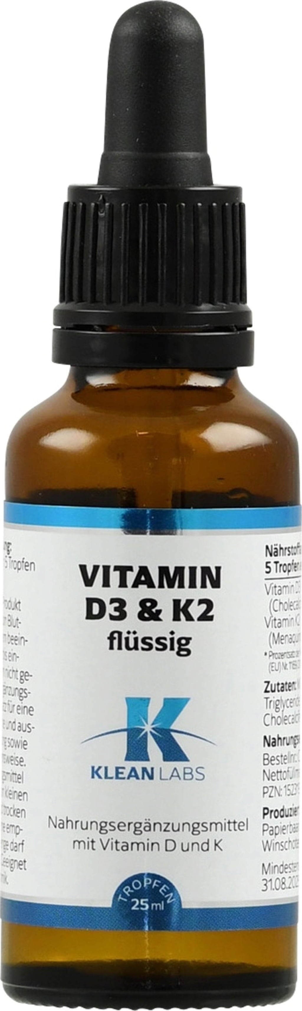 KLEAN LABS Nestemäinen D3- & K2-vitamiini, 25 ml