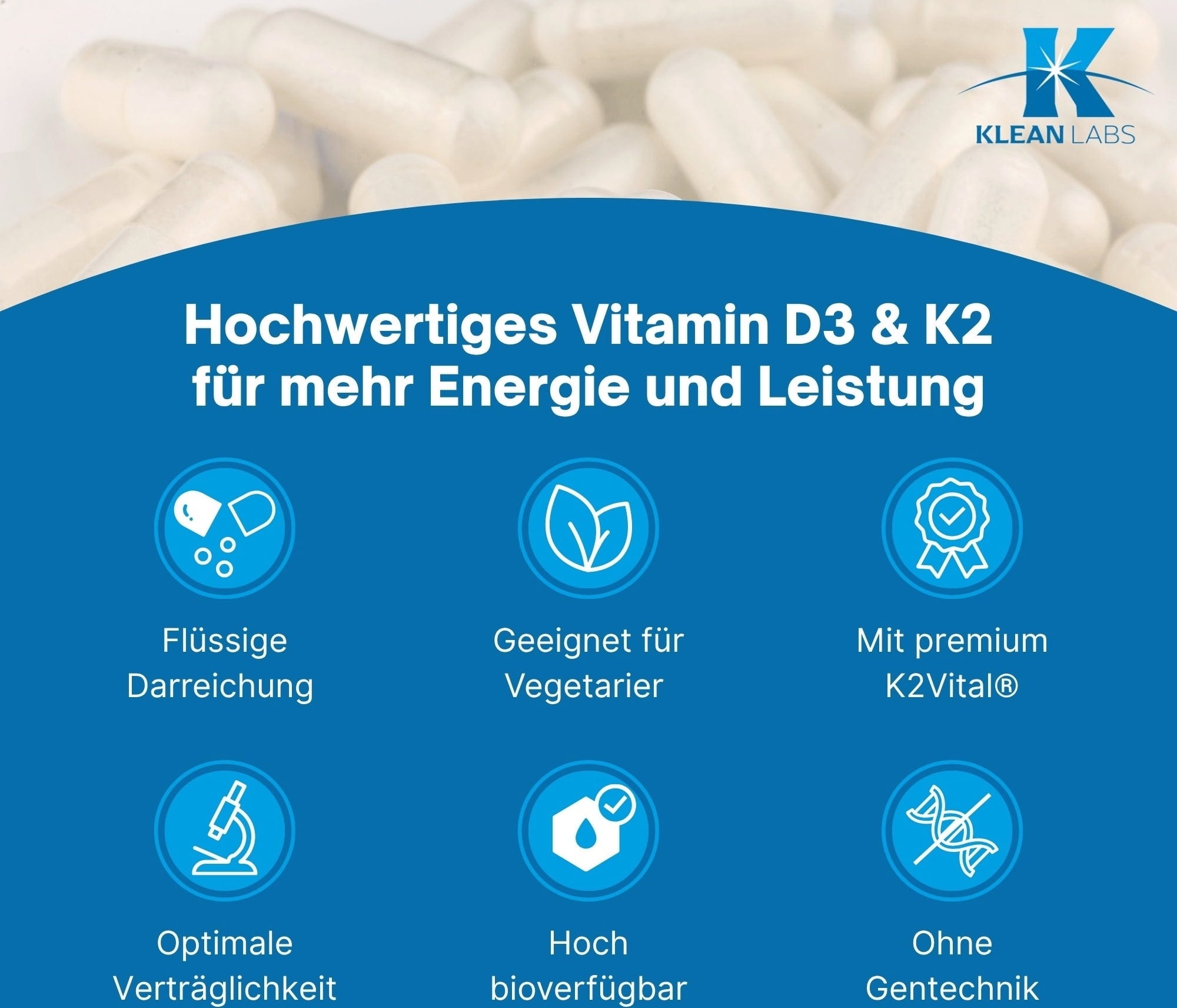 Rasvaliukoisten D3- ja K2-vitamiinien optimaaliseksi hyödyntämiseksi KLEAN LABS käyttää tippoihin MCT-öljyä. K2-vitamiini sisältyy formulointiin menakioni MK-7:nä.