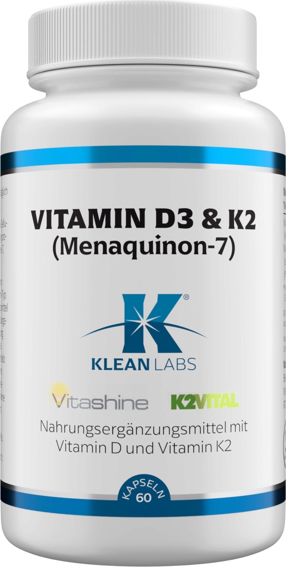 KLEAN LABS:in kapselit yhdistävät D3-vitamiinin (Vitashine™ jäkälästä) ja K2-vitamiinin (K2Vital®). D-vitamiini edistää kalsiumin normaalin imeytymisen ja hyödyntämisen. K-vitamiini edistää normaalia veren hyytymistä ja tukee luuston pysymistä normaalina.