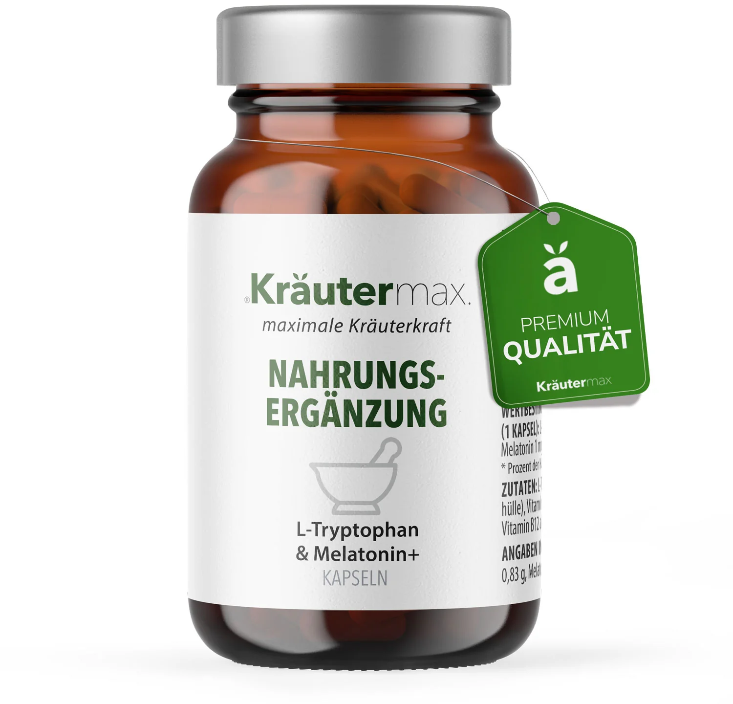 Nämä vegaanikapselit on kehitetty alkuperäisen Kräutermax-reseptin mukaan ja sisältävät L-tryptofaania, melatoniinia sekä vitamiineja B6 ja B12.