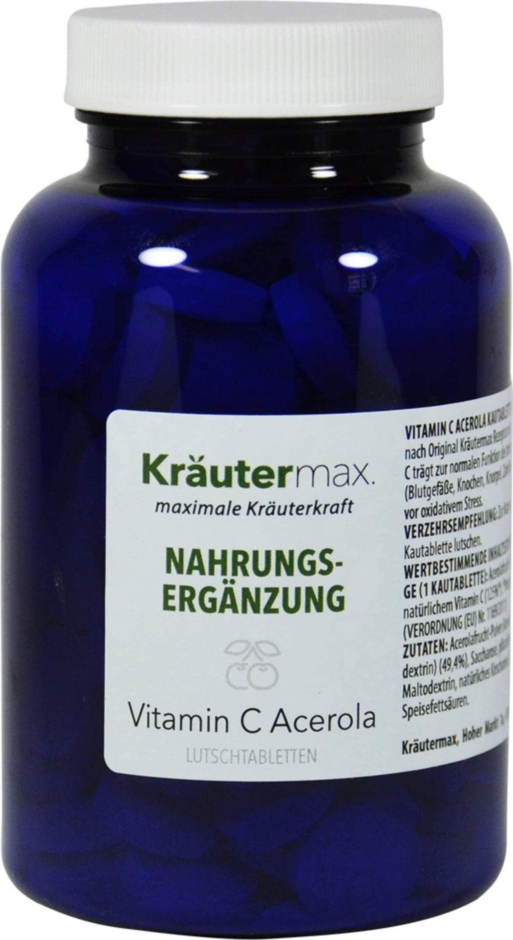 Nämä Kräutermaxin Vitamin C Acerola-imeskelytabletit (aiemmin C-Max Acerola) sisältävät acerolakirsikoiden luonnollista C-vitamiinia ja ne maistuvat kirsikalta.