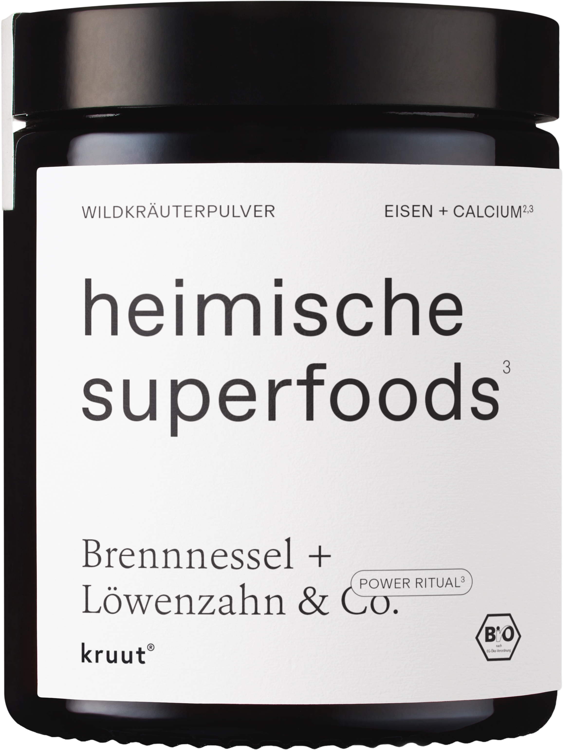 Heimische Superfoods Villiyrttijauhe merkiltä kruut toimii raikkaana matchan vaihtoehtona, aina kun kaipaat sitä. Sen metsämäinen ja raikas maku syntyy nokkosen, voikukan ja peltokortteen yhdistelmästä. Yrtit korjataan käsin valikoiduilla luomutiloilla ja kuivataan sekä jauhetaan hellävaraisesti, jotta kasvien arvokkaat ainesosat säilyvät mahdollisimman hyvin. Yrtit sisältävät luonnostaan arvokkaita kivennäisaineita ja kasviperäistä proteiinia, mikä tekee villiyrttijauheesta täydellisen lisän päivittäiseen arkeesi.