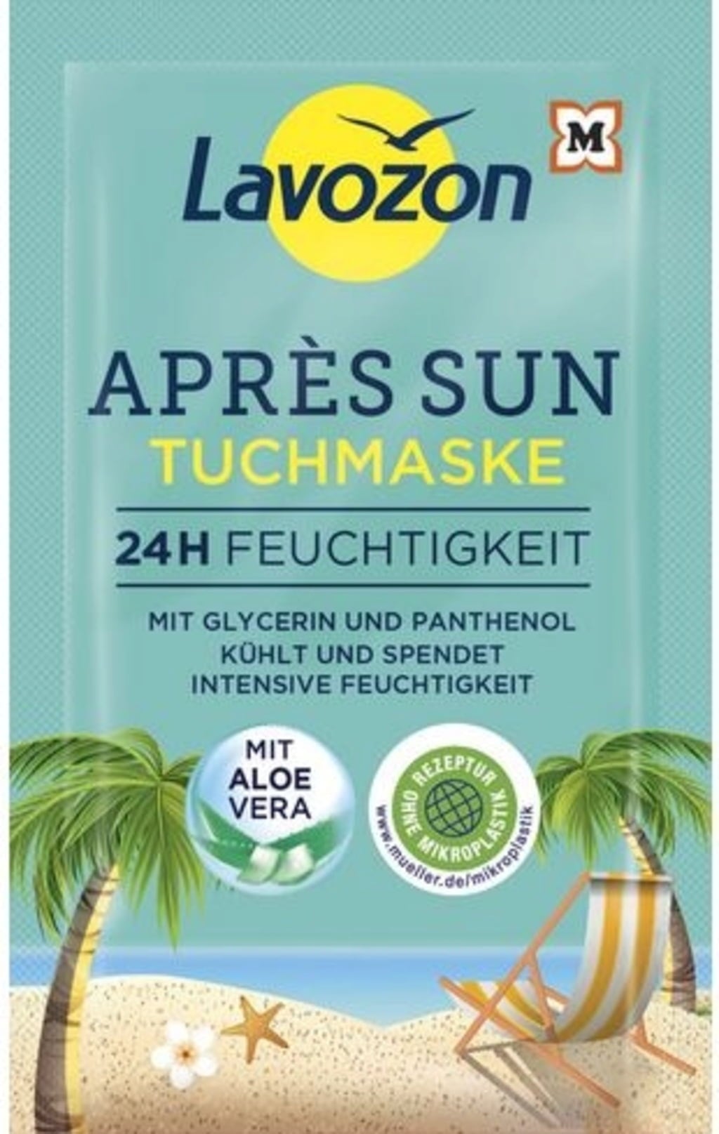 Lavozonin Après Sun -kuitukangasnaamio on raikastava hoitoboosti intensiivisen auringonoton jälkeen. Aloe veraa, pantenolia, kasviglyseriiniä ja hyaluronihappoa sisältävä koostumus hoitaa auringon rasittamaa ihoa optimaalisesti. Ei sisällä mikromuoveja.