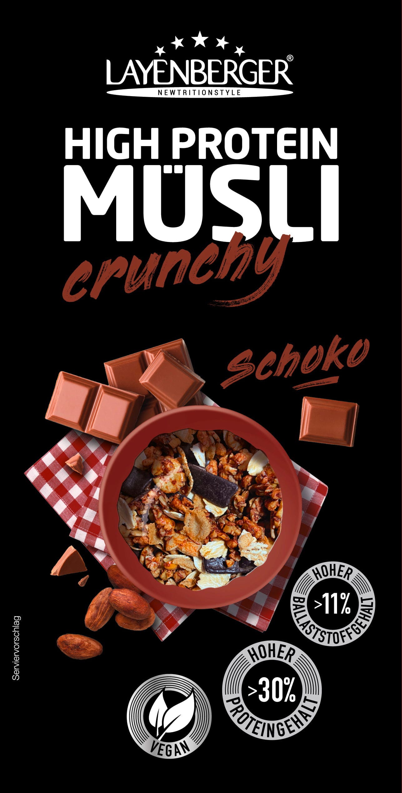 LAYENBERGER Korkeaproteiininen Crunchy Müsli, Suklaa (375 g)