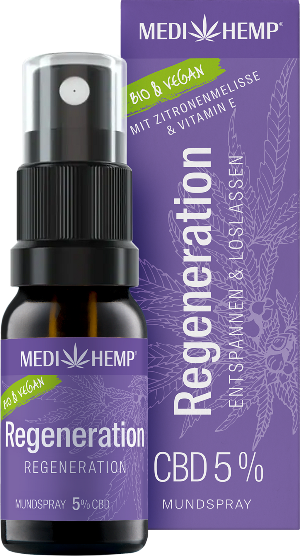 MEDIHEMP Regeneration Luomu on CBD-suusuihke, joka koostuu hamppuöljystä ja sitruunamelissa-uutteesta. Koostumus on rikastettu lisäksi E-vitamiinilla. Luonnolliset sitruunaruohon, inkiväärin ja basilikan aromit antavat miellyttävän makuvivahteen.