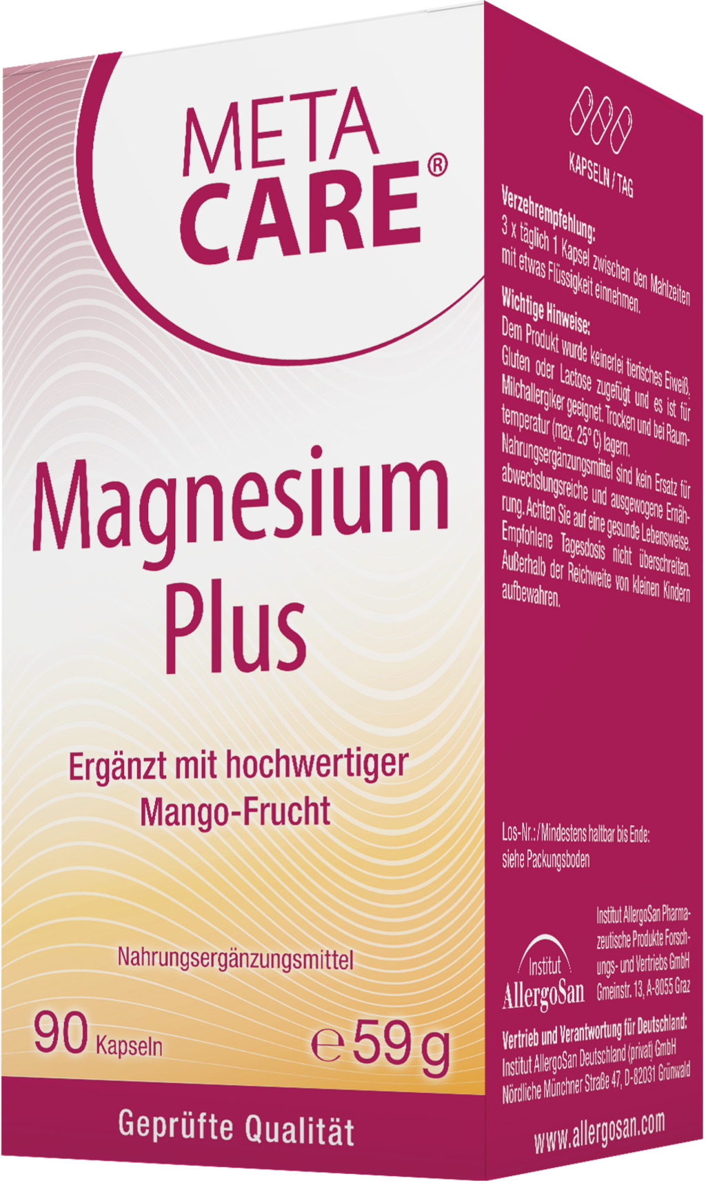 META-CARE® Magnesium Plus -kapselit ovat täydellinen ravintolisä urheilijoille ja aktiivisille ihmisille. Vegaaniset kapselit sisältävät orgaanista magnesiumia, korkealaatuista mangojauhetta ja D3-vitamiinia.
