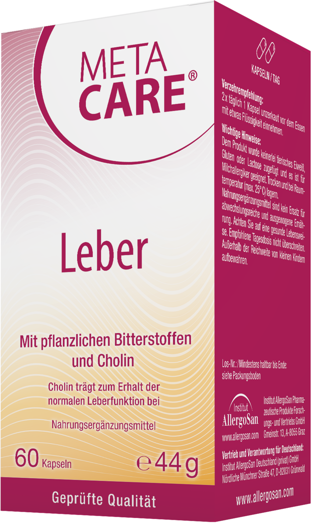 Vegaaniset META-CARE® maksa-kapselit sisältävät katkeroita maarianohdakkeesta, voikukasta ja artisokasta. Lisäksi ne on rikastettu piparjuurella, joka sisältää runsaasti sinappiöljyjä, sekä koliinilla. Kapselit ovat geenimuuntelemattomia, gluteenittomia ja laktoosittomia.