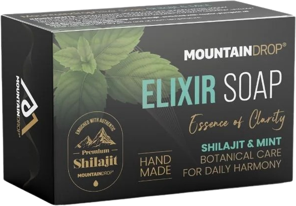 Mountaindropin Elixir-saippua on ainutlaatuinen hoitosaippua, joka on rikastettu mineraalipitoisella Premium-Shilajitilla. Hellävaraisessa kylmäsekoitusmenetelmässä valmistettuna kaikki arvokkaat mineraalit ja muut lämmölle herkät ainesosat säilyvät täysin. Koostumus on suunniteltu erityisesti erilaisten ihotyyppien tarpeisiin, tarjoten hellävaraista puhdistusta kuivattamatta ihoa, myös herkälle iholle. Saatavilla raikkaissa Citronella- tai Minttu-variaatioissa, saippua jättää iholle hoidetun tunteen jokaisen pesun jälkeen.