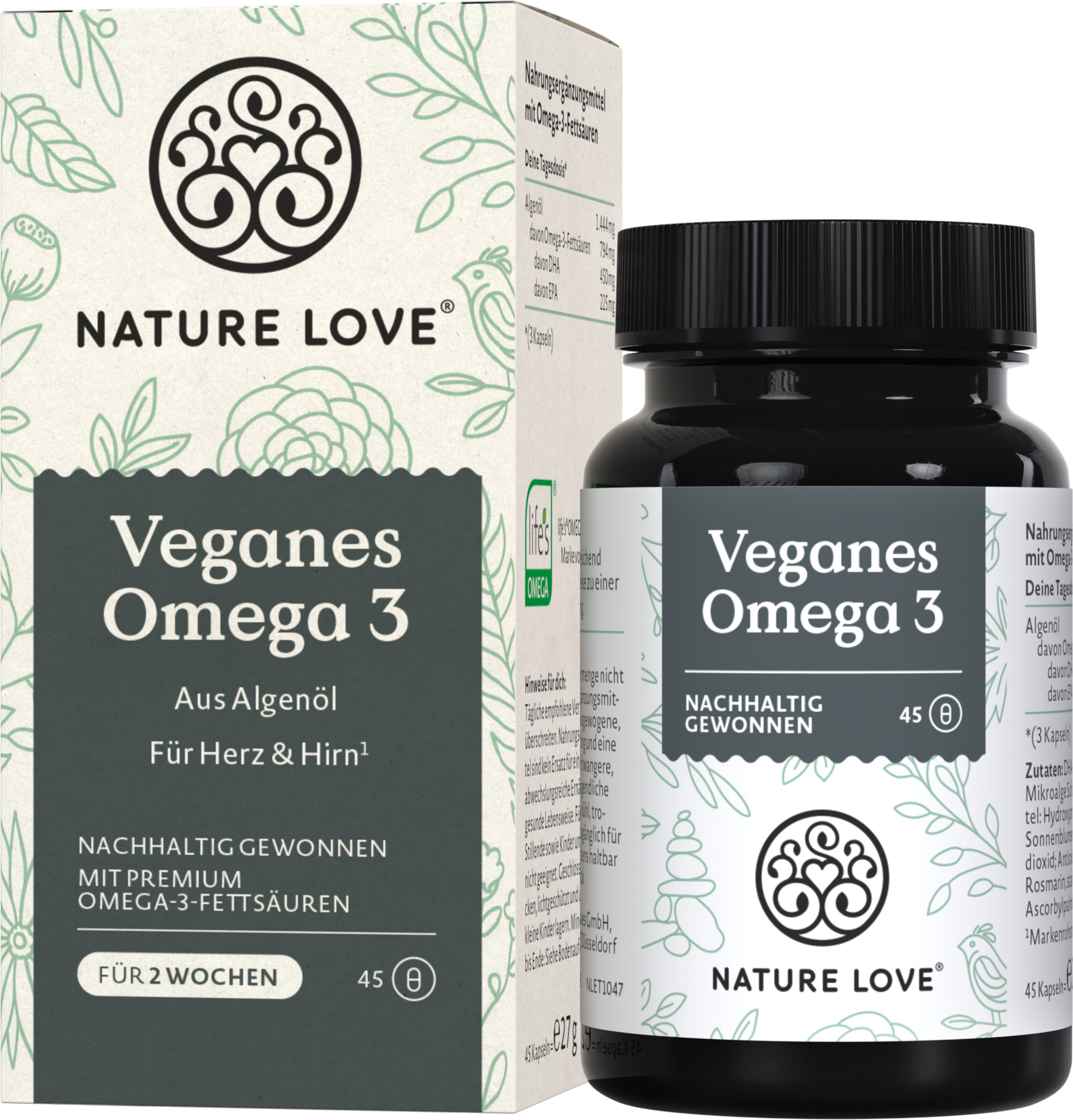Omega-3-rasvahapot mikrolevän Schizochytrium sp. öljystä ovat täydellinen valinta kasvissyöjille ja vegaaneille. Nature Love kiinnittää huomiota kestäviin tuotantomenetelmiin ja käyttää ainoastaan viljeltyjä leväkasvustoja merellisen ekosysteemin suojelemiseksi. Käytössä on korkealaatuinen raaka-aine life's® OMEGA.