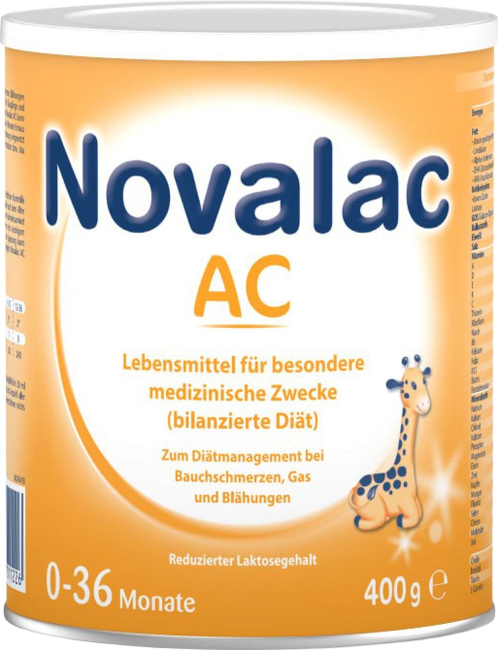 Novalac AC on ihanteellisesti sovitettu lapsesi erityistarpeisiin. Gluteeniton resepti sisältää monia tärkeitä ravintoaineita, kuten aminohappoja, kivennäisaineita ja vitamiineja. Novalac AC sisältää muun muassa A-, B12-, C-, D- ja E-vitamiinia, rautaa, sinkkiä, kalsiumia, magnesiumia ja jodia.