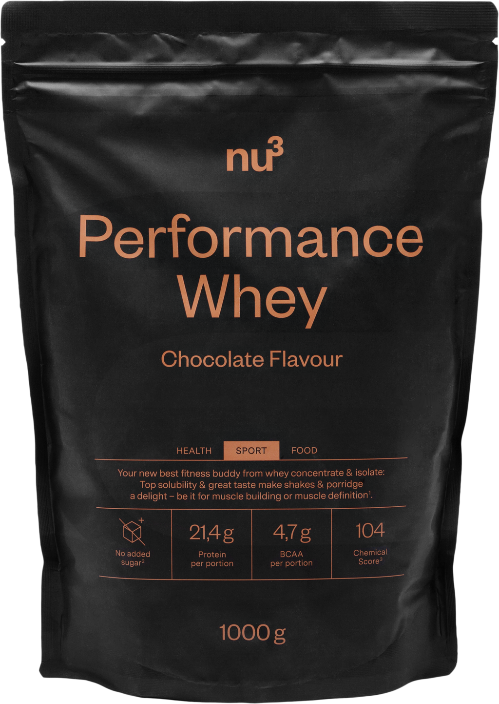 nu3 Performance Whey -proteiinijauhe, Suklaan maku (1 kg)