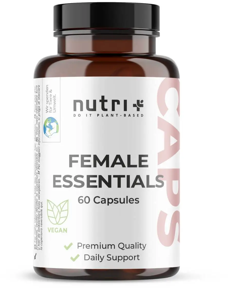 Female Essentials tarjoaa sinulle kattavan kompleksin tärkeitä vitamiineja ja kivennäisaineita – erityisesti naisten tarpeisiin räätälöitynä. Mukana ovat muun muassa rauta, foolihappo, sinkki ja D-vitamiini sekä antioksidanttiset vitamiinit kuten C, E ja A.