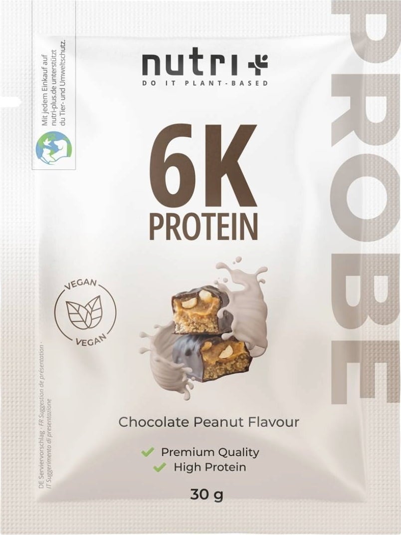 nutri + Vegaani 6K Proteiinijauhe Kokeilukoko, Suklaa-maapähkinä (30 g)