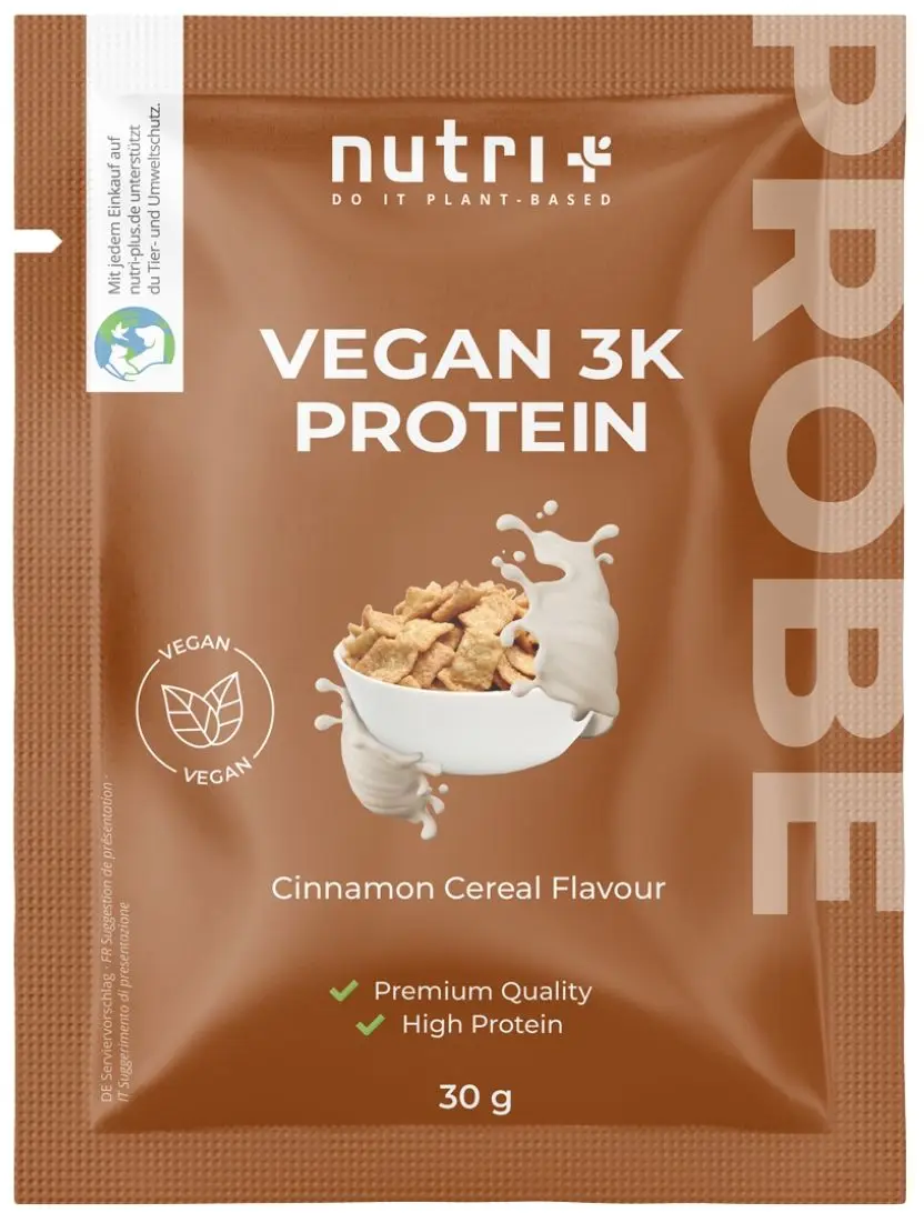 nutri + Vegaaninen 3K proteiinijauhe, kokeilukoko, Kanelimurot (30 g)