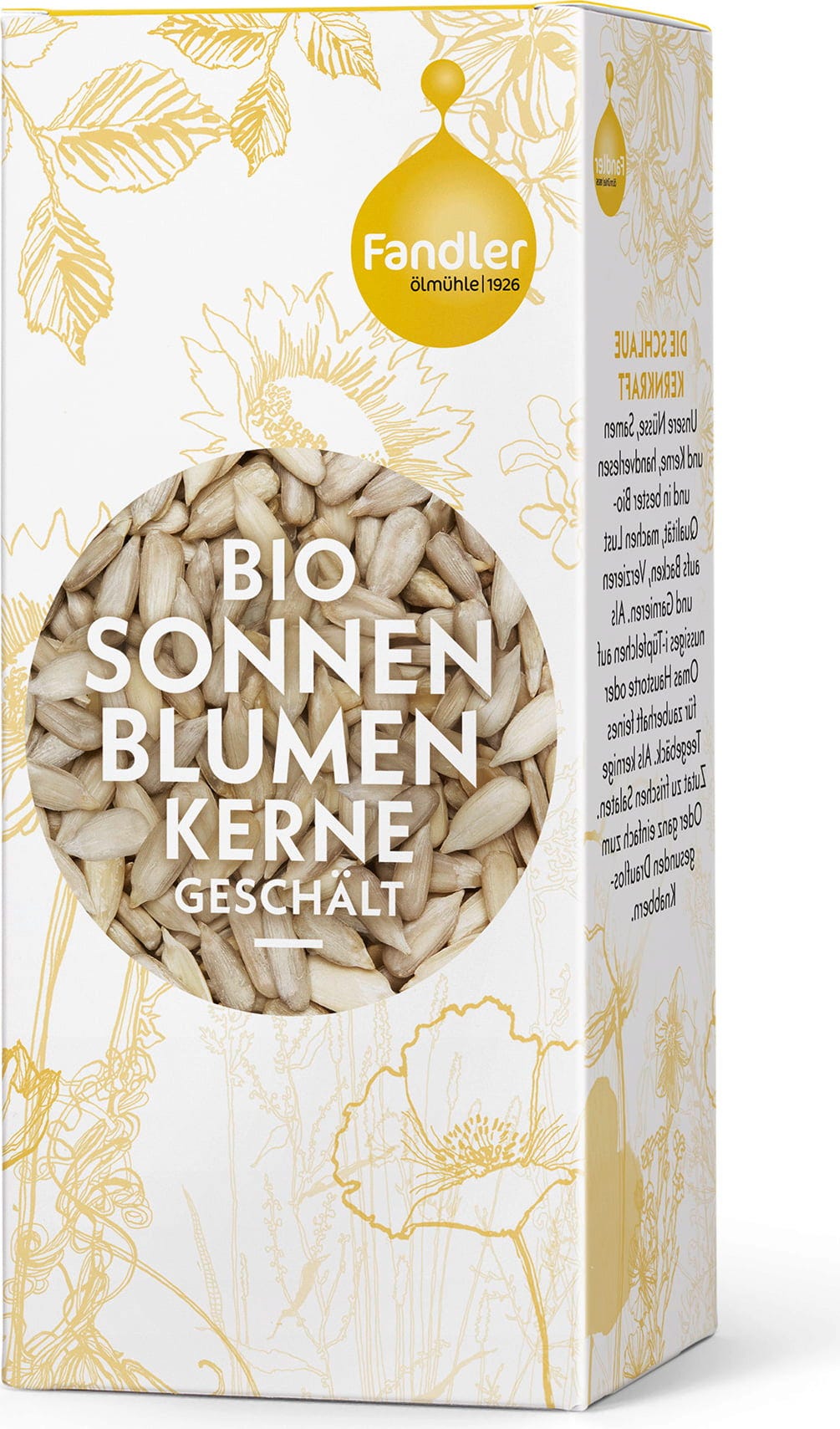 Kaikki, jotka tykkäävät napostella auringonkukansiemeniä, rakastavat niitä myös leivässä, myslissä tai salaateissa. Ölmühle Fandlerin luomuauringonkukansiemenet ovat kuorittuja ja niiden aromikas maku on yksinkertaisesti vastustamattoman hyvä.