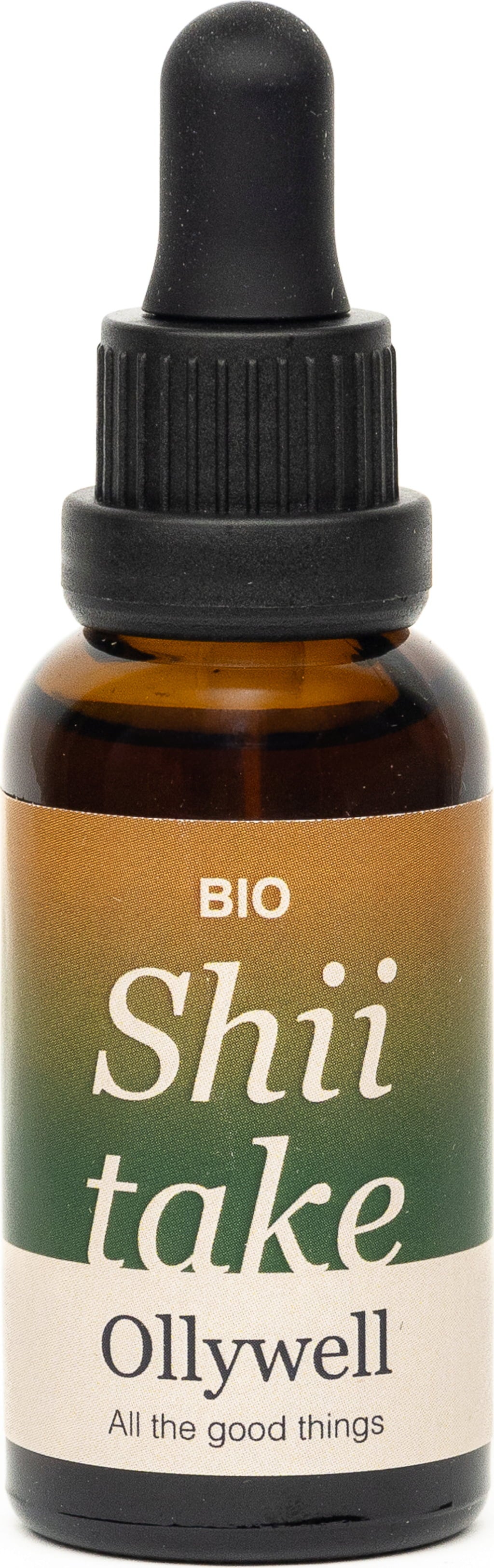 Ollywell BIO Shiitake -uute tarjoaa tiivistetyn muodon 100 % hedelmäkappaleista (Lentinula edodes), jotka on peräisin sertifioidusta biologisesta viljelystä EU:ssa. Jokainen pullo sisältää uutteen 20 000 mg tuoreista sienistä suhteessa 10:1.