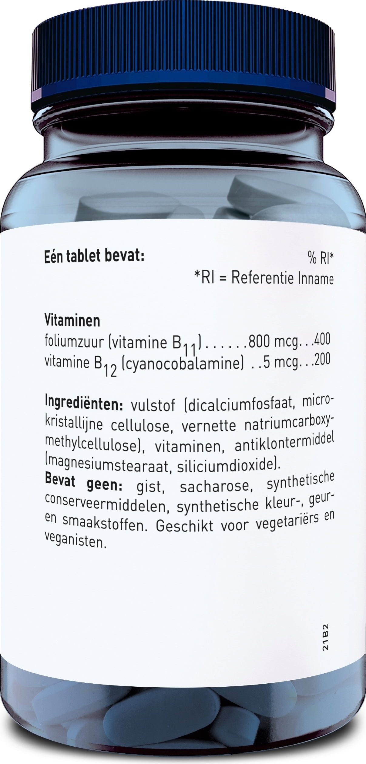 Yksi tabletti sisältää 800 mikrogrammaa foolihappoa tai B11-vitamiinia. Tämä vahva annos sisältää lisäksi B12-vitamiinia syanokobalamiinina.