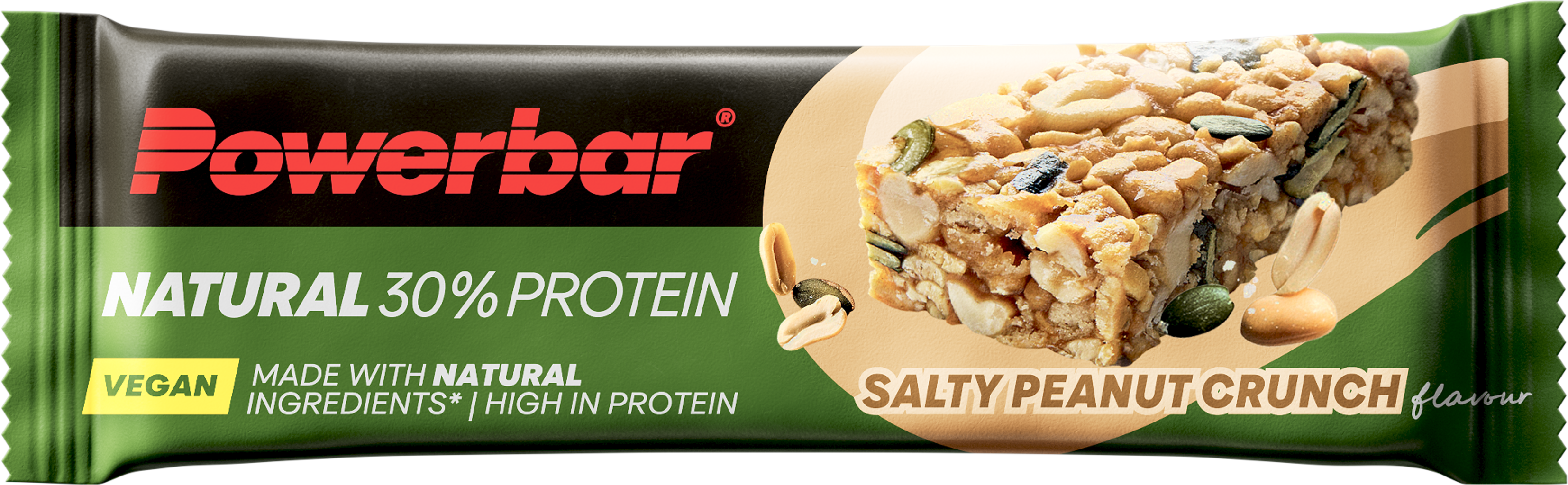 Luonnolliset ja vegaaniset ainesosat ovat PowerBarin Natural Protein -patukan keskeinen osa. Sisältää myös runsaasti proteiinia!