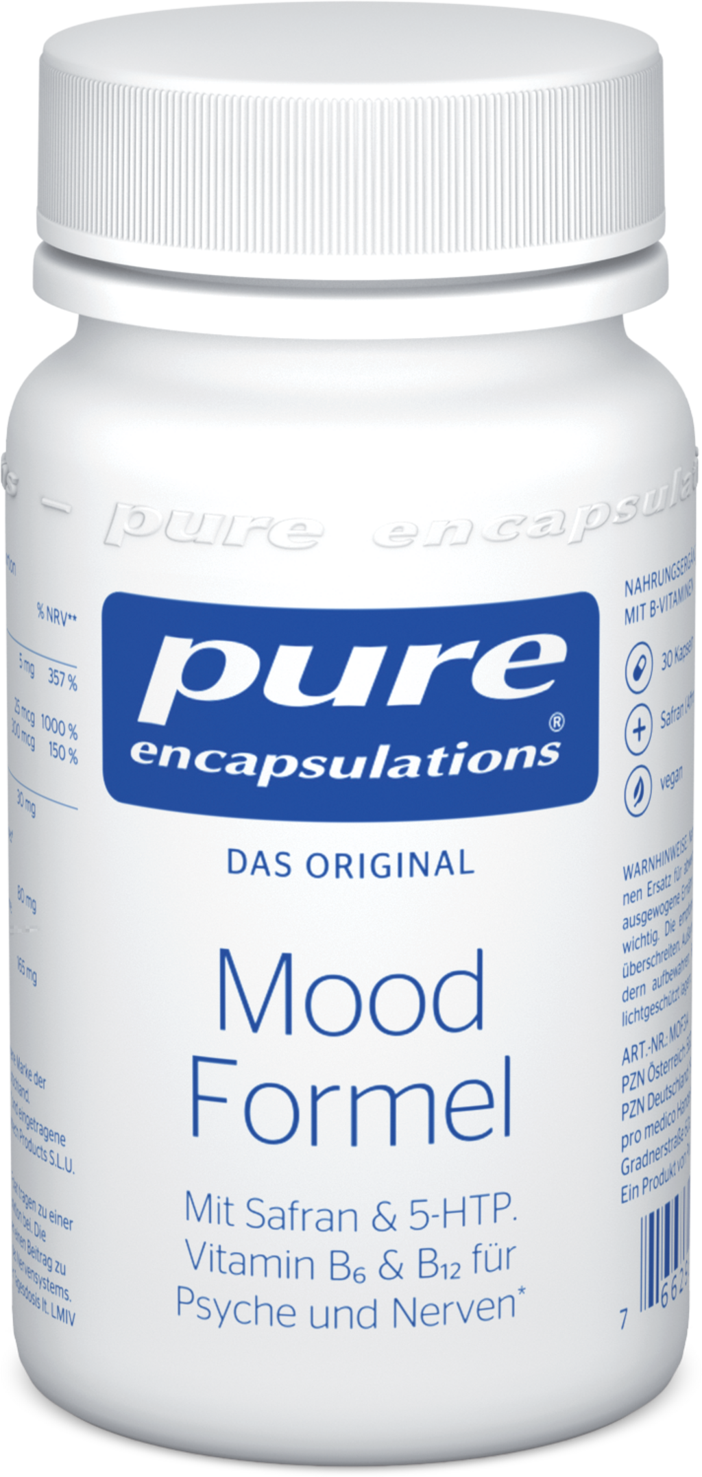 pure encapsulations®:in Mood Formula yhdistää huolellisesti valittuja kasviperäisiä uutteita ja välttämättömiä B-vitamiineja – ihanteellinen valinta kaikille, jotka haluavat täydentää päivittäistä ruokavaliotaan tarkasti. Jokainen kapseli sisältää uuden kolmitehoisen kompleksin, johon kuuluu sahrami, Griffonia ja Rhodiola Rosea. Kaavaa täydentävät B6-, B9- (folaatti) ja B12-vitamiinit, jotka kaikki edistävät normaalia energiantuotantoa.