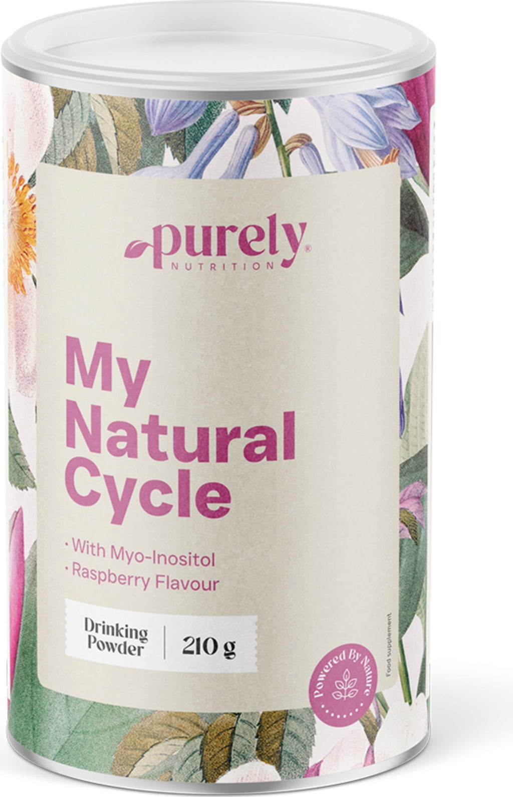 My Natural Cycle Purely Nutritionilta on hedelmäinen juomajauhe, jossa on vadelman maku, ja joka voi tarjota naisille optimaalista tukea sekä hedelmällisinä että kypsempinä vuosina. Jauhe sisältää muun muassa myo-inositolia, foolihappoa, sinkkiä, magnesiumia, seleeniä ja D3-vitamiinia.