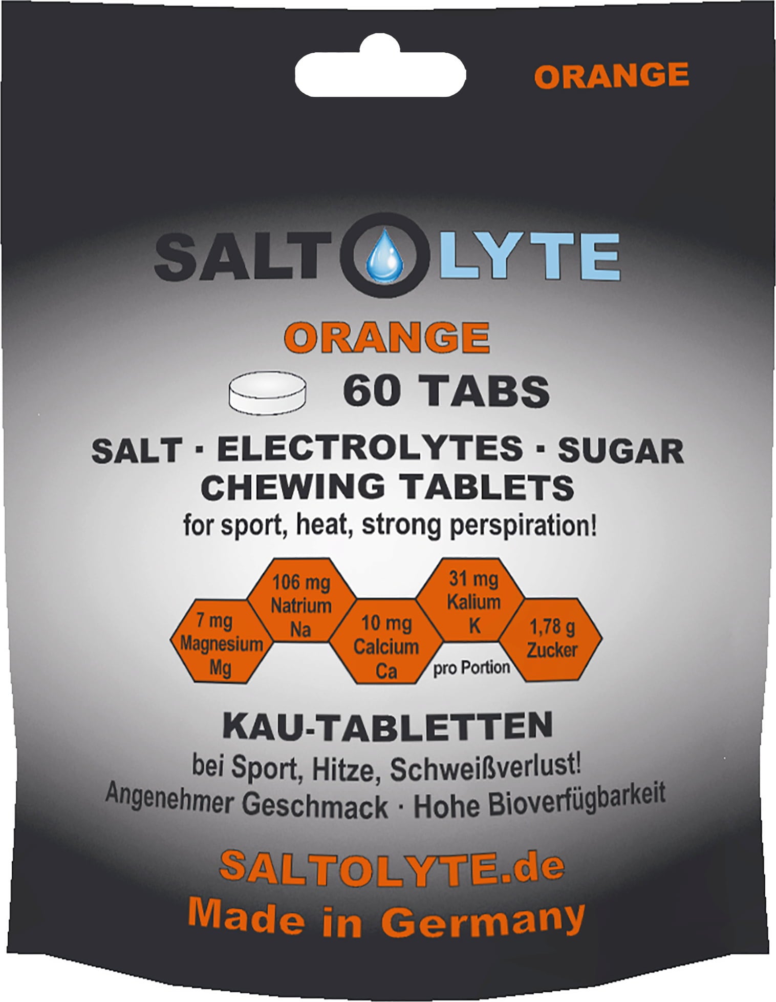 SALTOLYTE 60 suola- ja elektrolyyttipureskeltavaa tablettia tarjoaa tärkeitä kivennäisaineita kätevässä muodossa – ihanteellinen intensiivisen liikunnan tai korkeiden lämpötilojen aikana. Yhdistelmä natriumia, kaliumia, kalsiumia ja magnesiumia on tasapainoisesti koostettu.